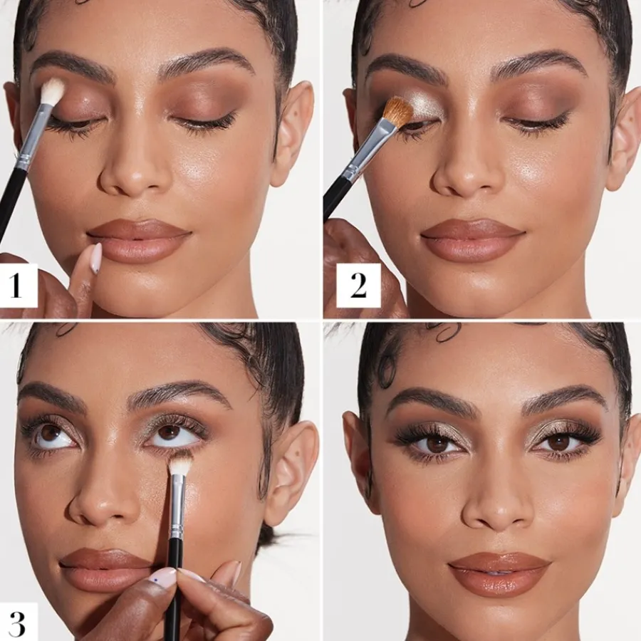 Verwende feste, dichte Pinsel zum Auftragen des Produkts und lockere Pinsel zum Verteilen und Verblenden.