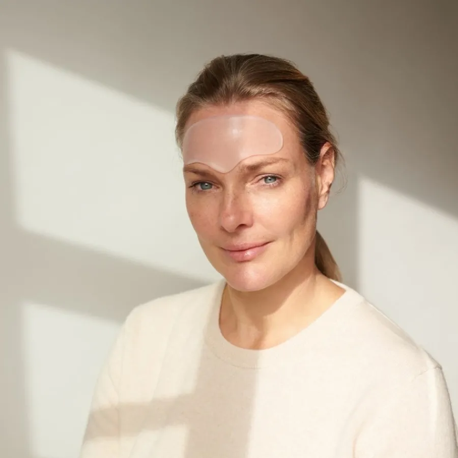Glätten Sie die Falten auf Ihrer Stirn sanft mit den Fingern und legen Sie das Pad auf die Haut.