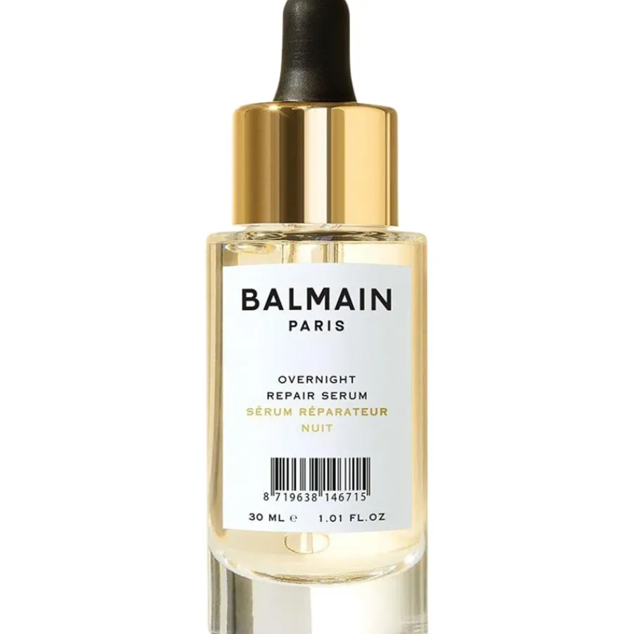 Das Balmain Hair Couture Overnight Repair Serum reduziert sichtbar die Anzeichen von stumpfem und geschädigten Haaren, glättet deren äußere Struktur, schenkt Glanz und verbessert die Frisierbarkeit – und das alles über Nacht. Es enthält unter anderem die Vitamine A und E, Chia-Samenöl, Quinoasamen-Extrakte sowie Kokosöl. Darüber hinaus ist es mit vielen Antioxidantien angereichert, welche die Haare vor weiteren Schäden schützen. Nach der Haarwäsche 2 bis 3 Tropfen in die handtuchtrockenen Haare verteilen. Für beste Ergebnisse in der ersten Woche jeden Abend verwenden, anschließend, wie die meisten Masken & Behandlungen, mindestens einmal wöchentlich.
