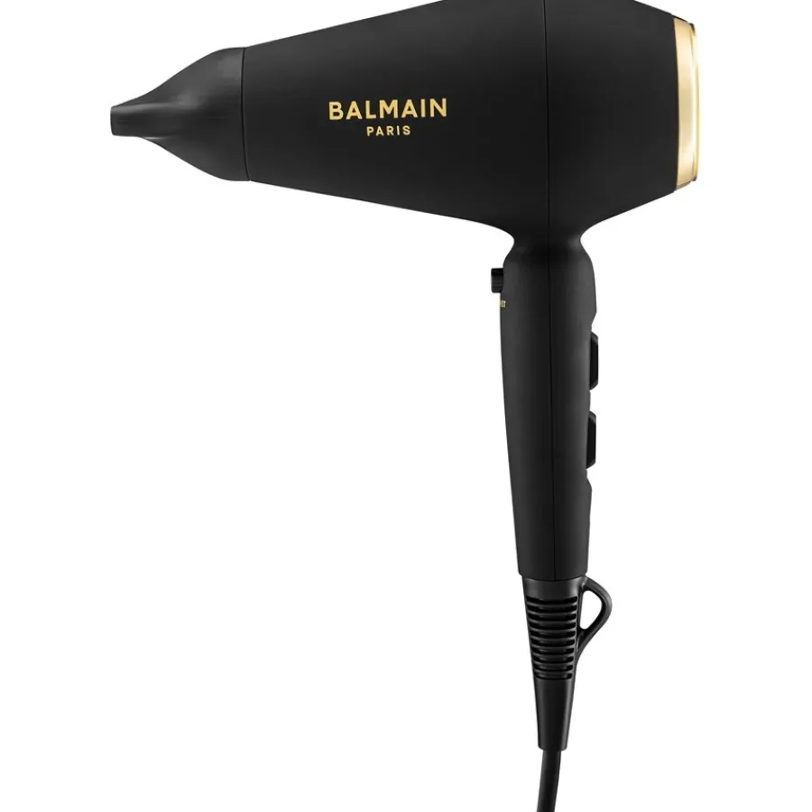 Dieser langlebige Trockner hat einen starken Motor für schnelle Ergebnisse. Beim Stylen liegt das Modell gut in der Hand, denn die Oberfläche des Griffs ist gummiert. Besonders schön gelungen ist die Farbgebung in Schwarz und Gold. Diese beiden Töne sind die auf der ganzen Welt berühmten Balmain-Farben. Der Professional Blowdryer Black inkl. Diffusor versiegelt mithilfe der Ionen-Technologie beim Trocknen der Haare die obere Schuppenschicht. Daher begeistern die Frisuren nach dem Stylen mit dem Balmain Hair Couture Haartrockner mit natürlichem Glanz und Spannkraft. Zudem verhindert der Luftstrom den gefürchteten Frizz Ihrer Haare.