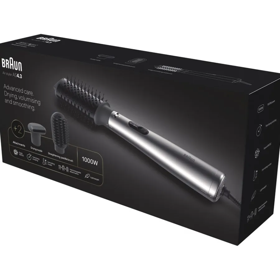 BRAUN HAIR CARE: Warmluftbürsten sind perfekt für die tägliche Haarpflege plus individuelles Styling. Der AS4.3 Airstyler ist ein hochwertiges und leistungsstarkes Haarpflegegerät, das vielfältige Eigenschaften vereint. Warmluftbürsten wie der AS4.3 Airstyler von BRAUN eignen sich perfekt für die tägliche Anwendung. Jeder Haartyp kann für ein tolles Haarstyling mit dem Airstyler bearbeitet werden.