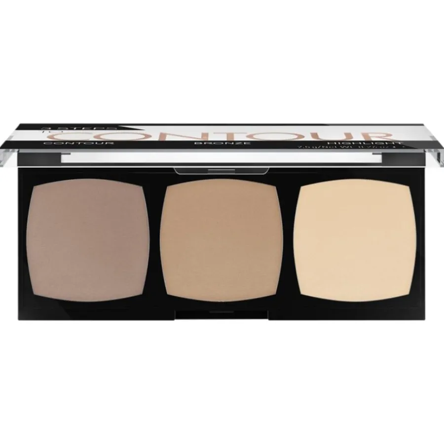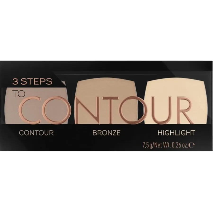 Nutzen Sie die Catrice 3 Steps To Contour Palette zum Shapen und Konturieren des Gesichts. Mit dem Contour-Puder lässt sich das Gesicht modellieren. Die dunkelste Nuance in der Palette sorgt für Dreidimensionalität und schattiert bestimmte Partien im Gesicht, sodass diese optisch zurücktreten. So können Sie das Gesicht schmaler und definierter wirken lassen. Auch der Bronzer modelliert und konturiert zusätzlich, kaschiert kleine Makel und sorgt für eine natürliche, sommerliche Frische des Teints. Schließlich kommt der Highlighter zum Einsatz. Mit dem Highlighter als hellste Farbnuance der Palette bringen Sie Ihren Teint zum Strahlen und betonen ausgewählte Gesichtspartien.