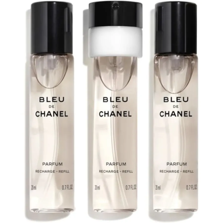BLEU DE CHANEL Parfum Twist and Spray im praktischen 20 ml Taschenformat mit nachfüllbarem Flakon ist der ideale Begleiter für unterwegs. Mit innovativem Design, minimalistischer Optik und einer geheimnisvollen tiefblauen Farbe wird der Duft zum dezenten, attraktiven Accessoire. Ein Twist genügt und schon entfalten die aromatischen und holzigen Noten von BLEU DE CHANEL Parfum ihren intensiven und majestätischen Charakter.
