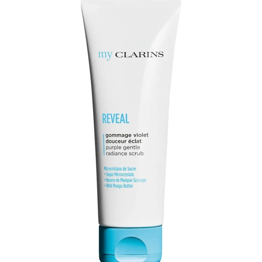 Das REVEAL Purple Gentle Radiance Scrub aus der CLARINS-Serie my CLARINS ist ein innovatives Gesichtspeeling. Mit seiner lila 2-in-1-Gel-Öl-Textur setzt es neue Maßstäbe in der Hautpflege. Bei Kontakt mit Wasser verwandelt sich die Textur in eine seidige, milchige Emulsion, die sanft über Gesicht und Lippen gleitet. Zwei Arten von Peelingpartikeln sorgen für ein doppeltes Ergebnis. Feine Körnchen natürlichen Ursprungs entfernen abgestorbene Hautzellen, während gröbere Zuckermikrokristalle das Hautbild verfeinern. Ergänzt wird die Formel durch Wilde-Mango-Butter. Mit ihren essenziellen Fettsäuren beruhigt und nährt sie die Haut und macht sie geschmeidig. Das Ergebnis ist ein sichtbar glatterer, ebenmäßigerer Teint, ganz ohne Irritation.