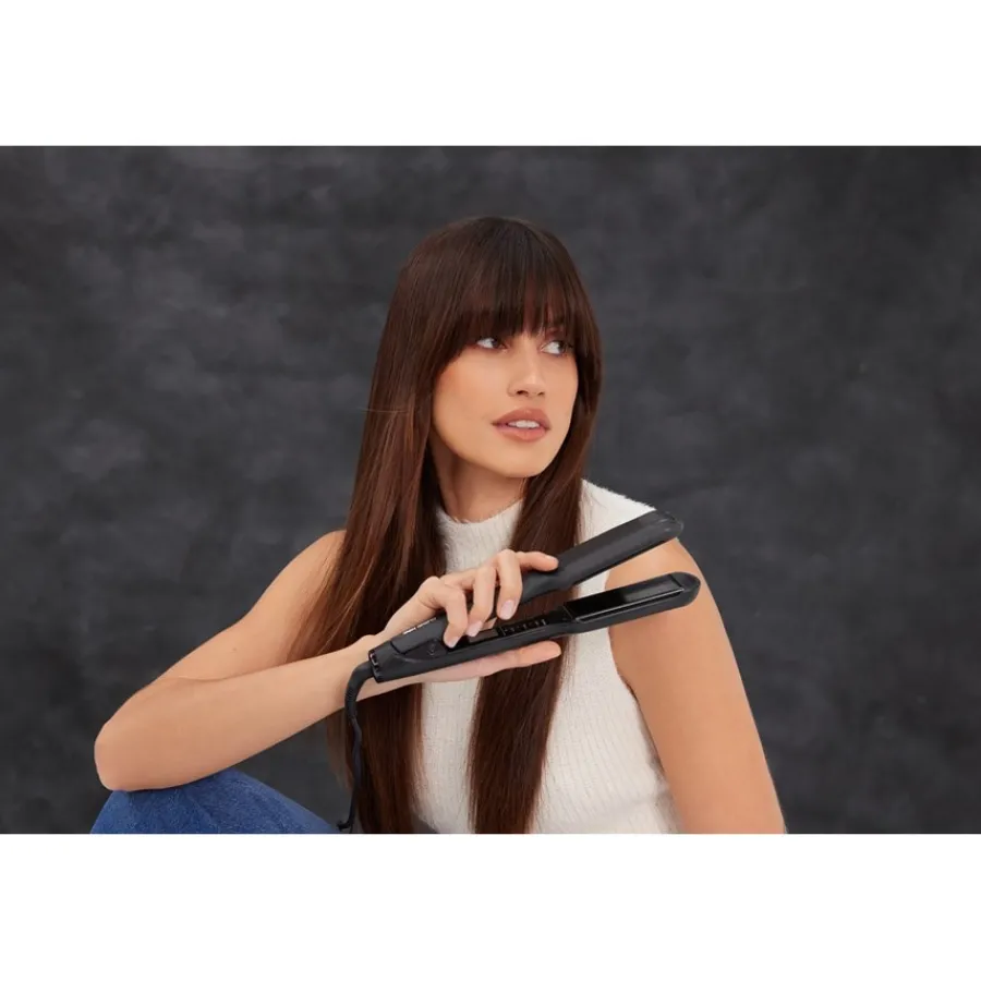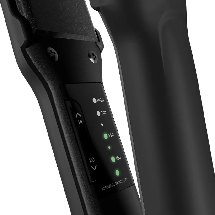 Schritt 4: Wählen Sie die gewünschte Temperatur mit dem Temperaturregler unterhalb der breiten Floating Keramik-Platten. Der Temperaturbereich reicht von 100-200°C. Die variable Temperaturregelung bietet eine eine Reihe von Einstellungen für verschiedene Haartypen. Stylen Sie bei niedrigeren Temperaturen für eine optimale Haargesundheit. Verwenden Sie den Temperaturrechner, um die beste Hitzeeinstellung für Ihr Glätteisen zu finden.
