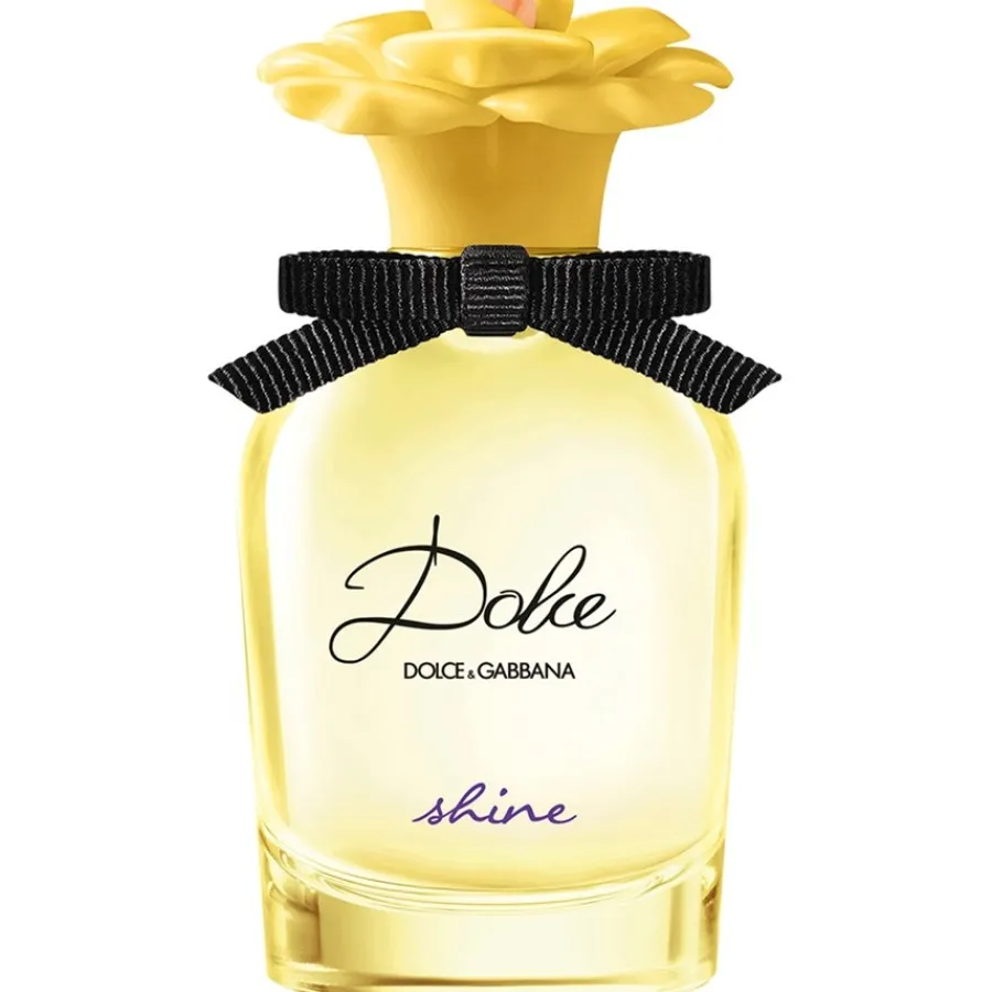 … und ein ähnlicher Blickfang ist der Dolce Eau de Parfum Spray Shine mit seinem gelbgold glänzenden Flakon. Für Dolce&Gabbana typisch verbirgt sich der Duft in einer mit Schleife verzierten, eleganten Verpackung. Schon auf den ersten Blick erinnert er an den Kuss der Sonne, wie sie zwischen den Bäumen hervorlugt oder einer bunten Blumenwiese zu ihrer Farbenpracht verhilft. Ein solches Szenario ruft auch die Komposition selbst hervor: In der Kopfnote bezaubern die fruchtige Mango und die Grapefruit, begleitet von der ebenso fröhlich-frischen Quitte. So spritzig von einem Duft begrüßt, fallen Ihnen die täglichen Aufgaben sicher nicht schwer. In der Herznote umfangen Sie dann die sanft-blumigen Akkorde von Jasmin und Orangenblüte, herrlich akzentuiert durch salzige Noten, die an einen Urlaub erinnern. Helle Hölzer, Moschus und Sandelholz runden das Parfum hingegen warm und weiblich ab.