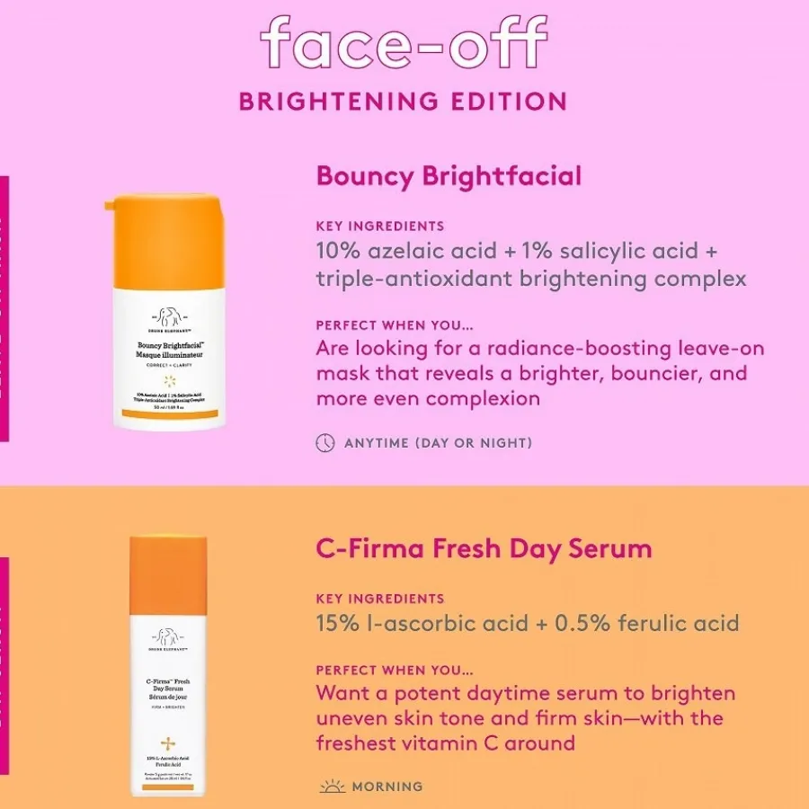 Die Hautpflege Bouncy Brightfacial wurde mit aus Gerste gewonnener Azealinsäure und Salicylsäure formuliert, um Unreinheiten und Verfärbungen der Haut zu korrigieren und gleichzeitig die Hautstruktur und den Hautton zu verbessern. Azealinsäure zeichnet sich dabei neben ihrer sanft peelenden Wirkung auch durch ihre hautberuhigenden Eigenschaften aus. In Kombination mit einem Trio aus Phloretin, Glutathion und Diglucosylgallussäure werden Pigmentflecke, Hyperpigmentierung, Zeichen von Sonnenschäden und Aknemale sichtbar gemildert. Gleichzeitig nähren pflanzliche Öle wie Marula-, Chiasamen- und Kürbiskernöl die Haut und versorgen sie mit Omega-Fettsäuren und Antioxidantien.Dieses Produkt der Masken & Spezialpflegen von Drunk Elephant stärkt die Hautschutzbarriere und sorgt für ein klareres, strahlenderes Hautbild und ein angenehmes Hautgefühl.Anwendung:2 bis 3 Pumpstöße zum Abschluss der morgendlichen oder abendlichen Hautpflege auftragen. Kann auch mit einem Serum oder einer Feuchtigkeitspflege von Drunk Elephant gemischt werden. Wie bei anderen säurehaltigen Masken und Spezialpflegen tagsüber unbedingt einen Breitband-Sonnenschutz verwenden.