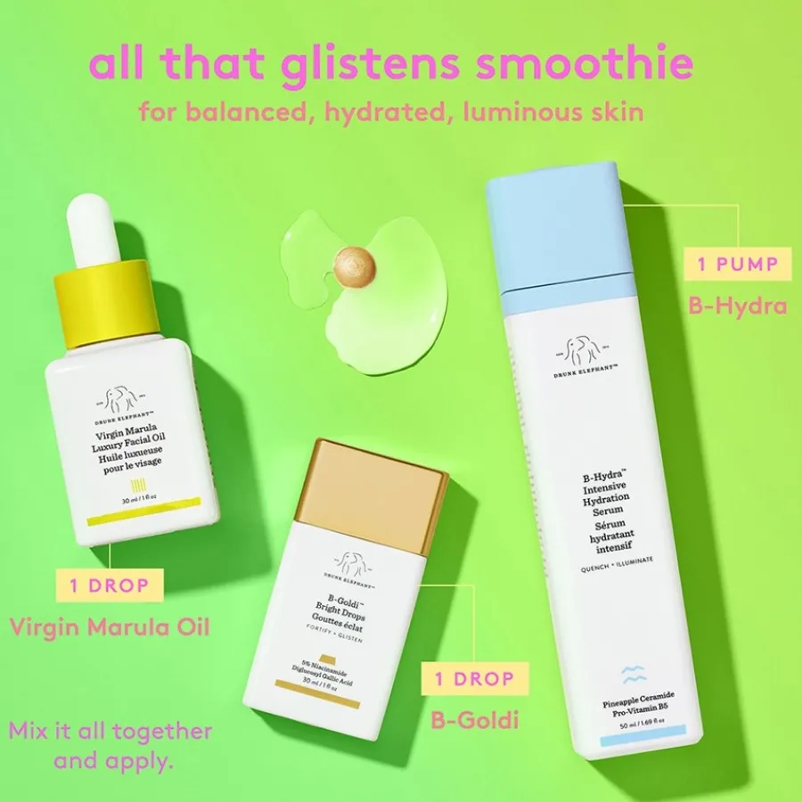 Schütteln Sie den Flakon vor jedem Gebrauch gründlich. Anschließend geben Sie einen oder mehrere Tropfen zu ihrem Lieblingsprodukt von Drunk Elephant. Die Hautpflege können Sie auf Gesicht, Dekolleté und Beine ebenso auftragen wie auf allen anderen Körperbereichen, auf denen Sie sich einen sanften Glow wünschen.