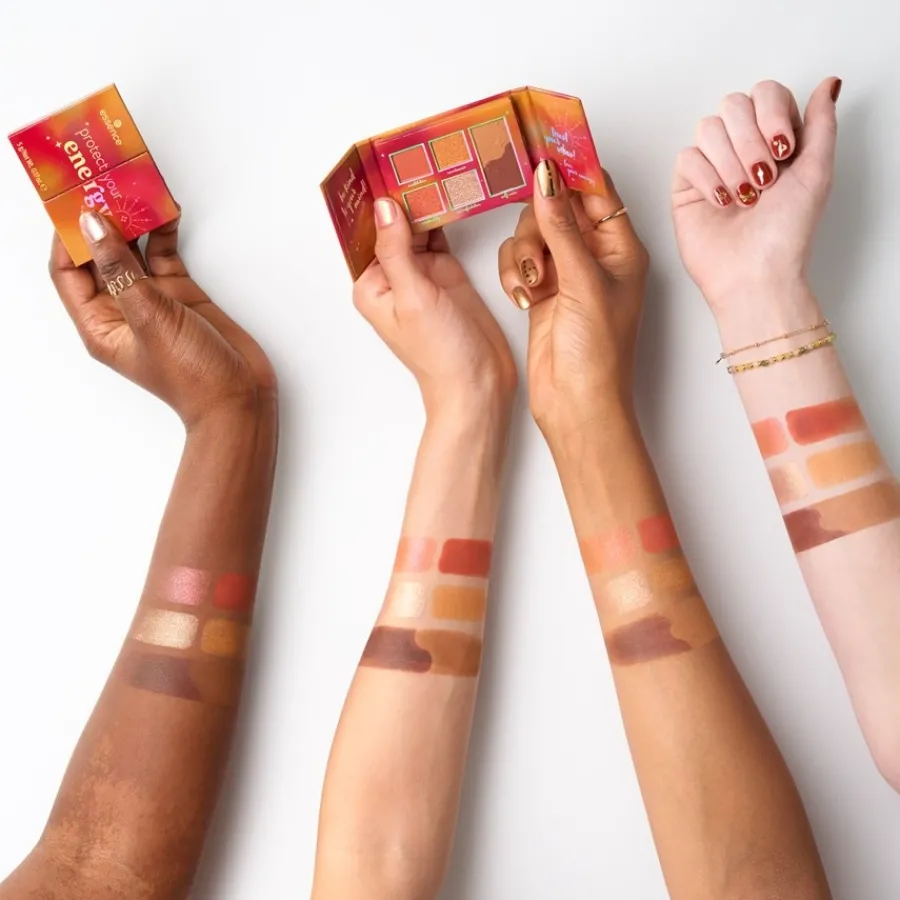 Die Lidschattenpalette besticht vor allem mit ihren erdigen Naturtönen, die von einem sanften Ockerton bis hin zu einem strahlenden Rosérot reichen. Sie harmonieren untereinander perfekt und lassen sich ganz nach Wunsch individuell miteinander kombinieren. Manche Töne kommen matt daher, während andere mit ihrem metallischen Glanz begeistern. In dieser kleinen, aber feinen Palette finden Sie eine abwechslungsreiche Wahl an Nuancen, mit der sich komplette Looks der Augen schminken lassen. Das kleine Format ist perfekt für unterwegs und passt für die nächste Urlaubsreise auf jeden Fall mit ins Gepäck.Wer auf vegane Kosmetik setzt, liegt mit der komplett veganen Protect Your Energy Mini Eyeshadow Palette genau richtig. Wie alle Produkte von Essence kommen auch hier keine Tierversuche zur Anwendung. Die Palette ist überdies frei von Ölen, Parabenen, Alkoholen und Duftstoffen.
