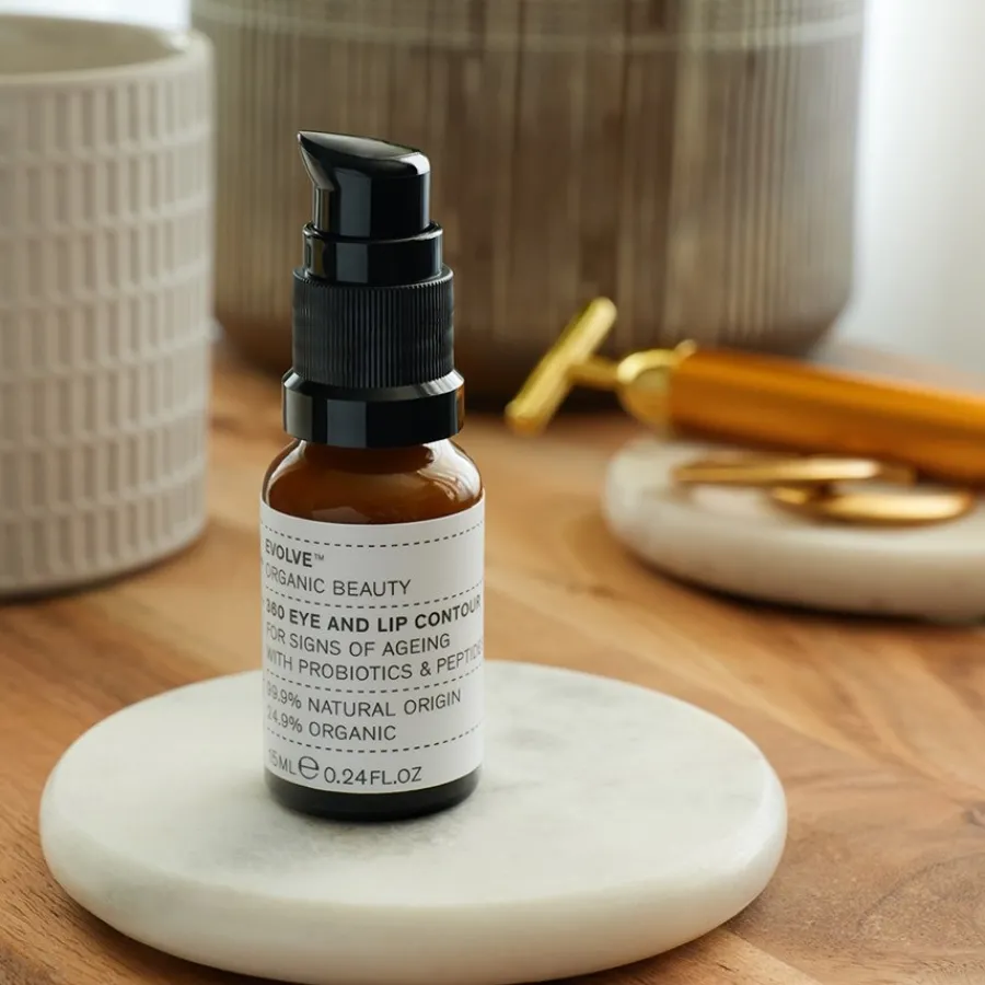 Die 360 Eye & Lip Contour Augen & Lippenpflege versorgt die dünne Haut nachhaltig mit Feuchtigkeit und wertvollen Nährstoffen. Das Produkt sollte sanft in die Haut rund um Augen und Lippen einmassiert werden. Die hochwirksame Hautpflege mindert Zeichen der Alterung wie Fältchen oder Schlaffheit. Auch unschöne Augenringe und Schwellungen werden effektiv bekämpft.Das Serum von Evolve Organic Beauty steckt voller hochwertiger Inhaltsstoffe wie Probiotika. Sie stärken und schützen die Haut und wirken sich insgesamt positiv auf das Hautbild aus. Weiter enthält die 360 Eye & Lip Contour Augen & Lippenpflege Peptide, welche die Haut widerstandsfähiger und kräftiger machen. Sie haben einen festigenden und glättenden Effekt. Andere wirksame Substanzen sind Hyaluronsäure, Arganöl, Koffein, Granatapfel und sonstige Pflanzenöle.