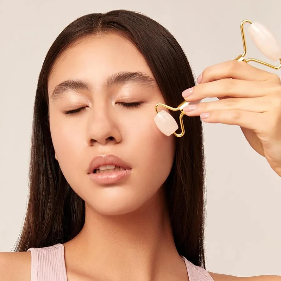 Frischer und rosiger Teint dank Massage: GLOV Facial Roller Pink Quartz
