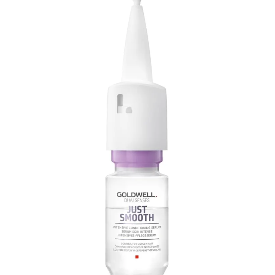 Und so wird das Serum von Goldwell angewendet: Zum Aktivieren der Haarpflege drehen, drücken und schütteln Sie das Fläschchen. Im Anschluss verteilen Sie das Intensive Serum im gewaschenen und handtuchtrockenen Haar und lassen es einwirken. Das Ausspülen des Serums ist nicht nötig. Nach der Anwendung können Sie Ihre Haare wie gewohnt frisieren. Das Serum ist für alle Haartypen geeignet, aber besonders für strapaziertes und widerspenstiges Haar. Das Serum ist in 12 Fläschchen à 18 ml erhältlich. Intensive Haarpflege von GoldwellAus der Pflegeserie Just Smooth sind weitere Produkte erhältlich, die perfekt für glattes und geschmeidiges Haar geeignet sind. Neben einer nährenden Haarkur gibt es aus der Serie das 6 Effects Serum sowie Shampoo und Conditioner für widerspenstiges Haar.