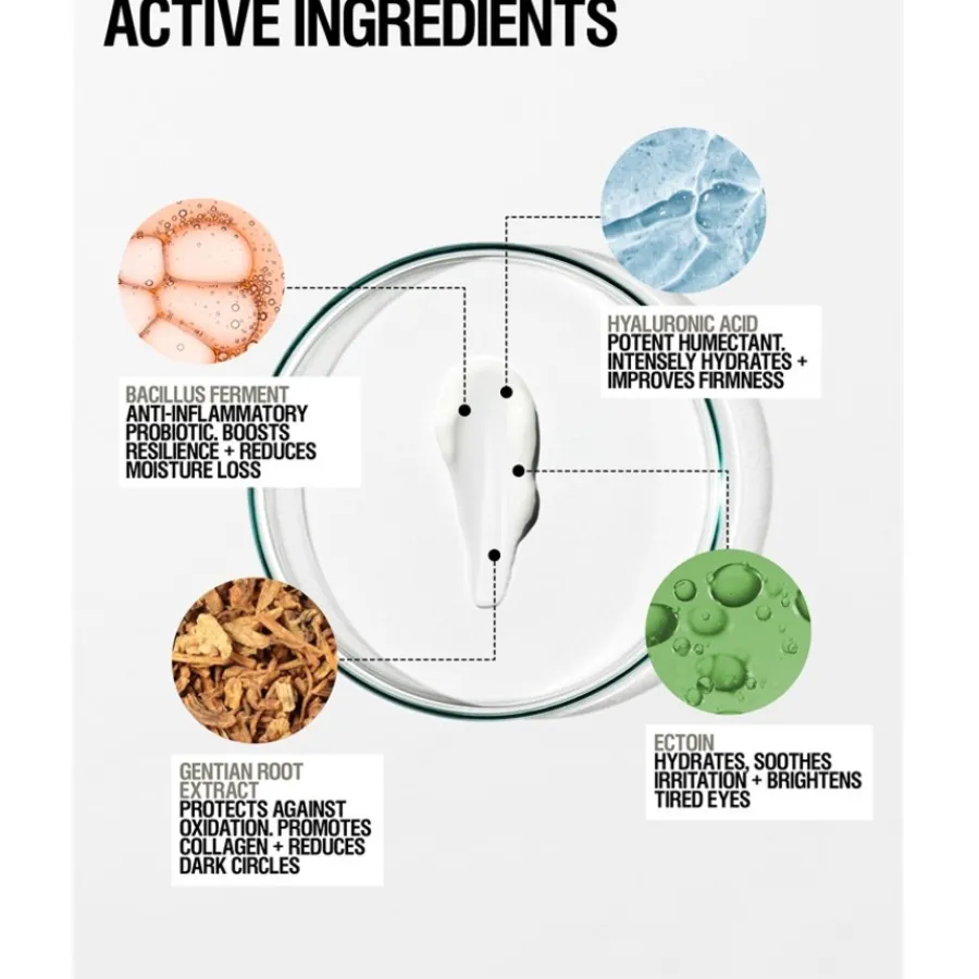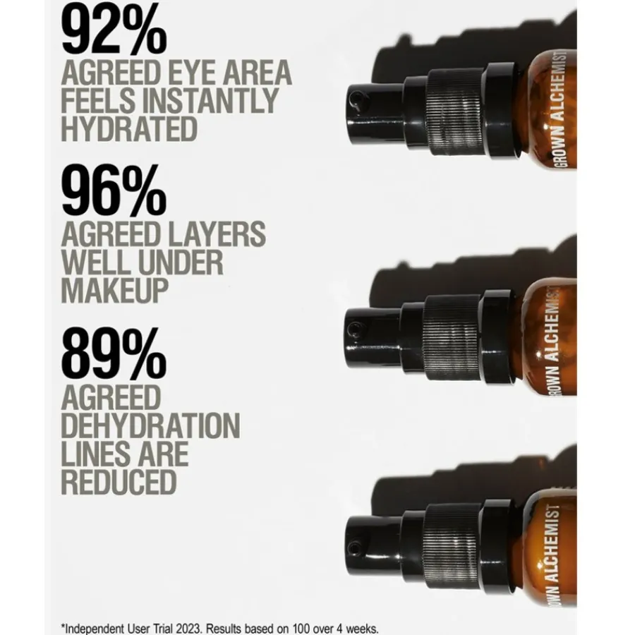 Im Grown Alchemist Hydra-Restore Eye Serum ist unter anderem Hyaluronsäure enthalten, die aufpolsternde und hydratisierende Effekte hat. Probiotische Inhaltsstoffe helfen indes, das hauteigene Mikrobiom zu stärken und bringen selbiges ins Gleichgewicht. Ectoin ist ebenso enthalten und spendet der Haut wertvolle Feuchtigkeit, während es zugleich Reizungen lindert und einen leicht aufhellenden Effekt hat, wodurch wiederum dunkle Augenringe optisch weniger auffällig sind. Gentianenwurzel-Extrakte agieren in der Formulierung wie ein sehr gut verträglicher und natürlicher Jungbrunnen, indem die Extrakte die Augenkonturen definieren und der Haut zusätzliche Elastizität spenden. Für den maximalen Pflegeeffekt sollte das Serum mindestens einmal täglich angewandt werden.