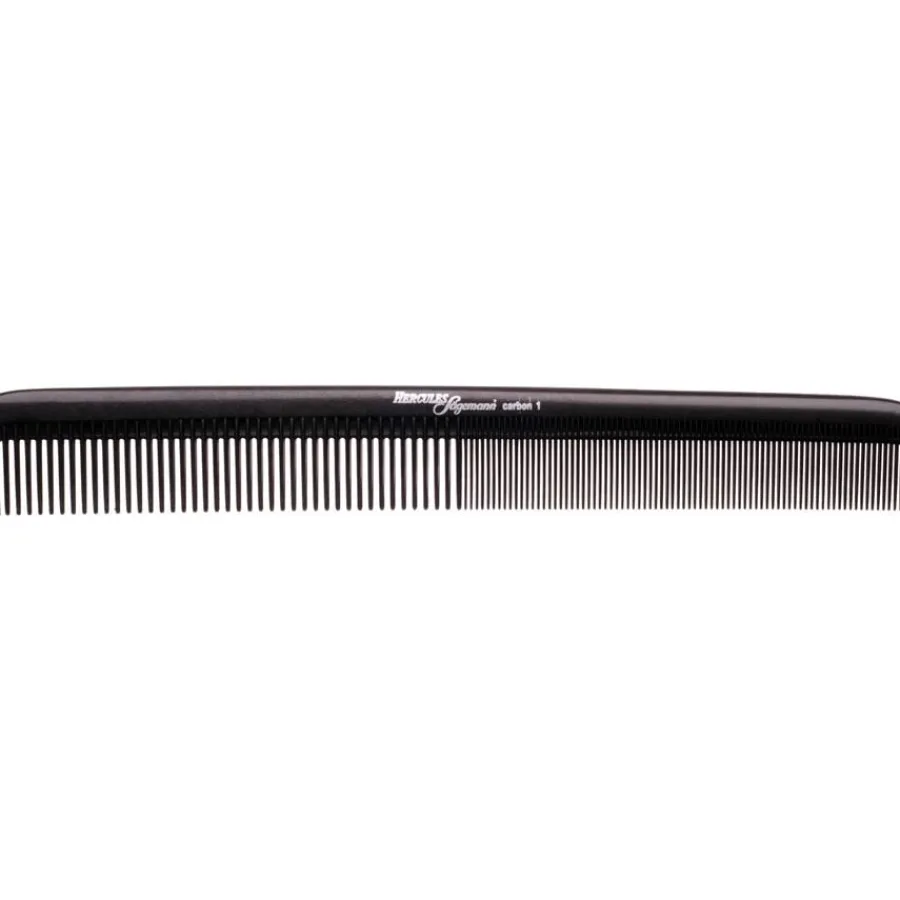 Der Carbonkamm Modell C1 ist gerade geformt und mit einer Reihe hochwertiger Zinken ausgestattet. Damit es beim Kämmen und Frisieren nicht zu einem eventuellen Piksen auf der Kopfhaut kommen kann, sind die Zinken sanft abgerundet. Der Kamm liegt beim Frisieren gut in der Hand und bietet eine exakte Funktionsweise. Die Haare lassen sich perfekt aufnehmen und individuell frisieren. Den oberen Rand zieren der Name des Labels sowie die Produktnummer des Kammes. Die Haare-Bürsten & Kämme sowie Scheren des Labels Hercules Saegemann werden von der New-York Hamburger Gummi-Waaren Compagnie (NYH) angefertigt, einem Hersteller von Profiausstattungen für Friseurgeschäfte. Die vielen unterschiedlichen Erzeugnisse sind bei Profis auf der ganzen Welt beliebt. Das Unternehmen wurde vor 150 Jahren gegründet und sitzt in Hamburg. Bestellen Sie die Carbonkämme und weitere Haare-Bürsten & Kämme des Labels bei Parfumdreams. Sie erhalten den Carbonkamm in zwei attraktiven Farben.