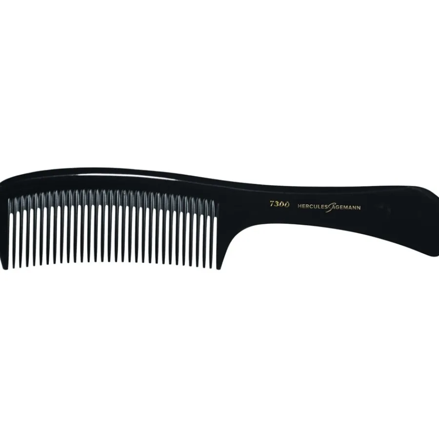 Der in der Farbe Schwarz erhältliche Griffkamm Modell 7300 wird aus Ebonit hergestellt, einem Material, das vor allem antistatisch wirkt. Damit verhindern Sie, dass sich die Haare beim Kämmen aufladen können. Das ausgesprochen biegsame Material ist gleichzeitig enorm hart und damit sehr langlebig. Die perfekt geformten Zinken sind am unteren Rand sanft abgerundet. Schenken Sie Haaren und Kopfhaut beim täglichen Kämmen eine Extraportion Pflege. Am oberen Rand der Griffkämme prangt der Name des Labels Hercules Sägemann sowie die Produktbezeichnung des jeweiligen Modells. Die Griffkämme und weiteren Haare Bürsten & Kämme des Labels werden von der New-York Hamburger Gummi-Waaren Compagnie (NYH) in Hamburg hergestellt, einem professionellen Anbieter von Ausstattungsgegenständen für Friseurläden. Das Unternehmen stellt seine Kämme und Bürsten bereits seit mehr als 150 Jahren her. Und dies nach wie vor in echter Handarbeit. Die vielfältigen Erzeugnisse werden weltweit exportiert. Bestellen Sie die Griffkämme und weiteren Produkte des Labels Hercules Saegemann gleich im Shop Parfumdreams.