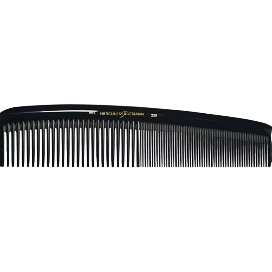 Der Meisterstück Kamm Modell 664-326 ist aus Ebonit hergestellt, einem edel glänzenden Material, das über eine Reihe positiver Eigenschaften verfügt. Der Kamm ist beispielsweise antistatisch und verhindert, dass sich die Haare beim Kämmen aufladen. Das robuste und gleichzeitig biegsame Ebonit sorgt dafür, dass der Kamm gut in der Hand liegt und ein leichtes und flexibles Arbeiten ermöglicht. Die Kämme des Labels sind mit exakt geformten Zinken ausgestattet. Am unteren Rand sind diese sanft abgerundet und massieren beim Kämmen und Stylen sanft Haare und Kopfhaut. Die Haare Bürsten & Kämme sowie weiteren Erzeugnisse des Labels Hercules Sägemann werden von der New-York Hamburger Gummi-Waaren Compagnie (NYH) in Hamburg angefertigt, einem Unternehmen, das sich auf die Herstellung von Waren für den professionellen Friseurbedarf spezialisiert hat. Das Unternehmen ist bereit seit mehr als 150 Jahren auf dem Markt tätig und exportiert seine Haare Bürsten & Kämme in viele Länder der Welt. Bestellen Sie den Meisterstück Kamm Modell 664-326 sowie eventuell weitere Produkte des Labels Sägemann im Shop von Parfumdreams.