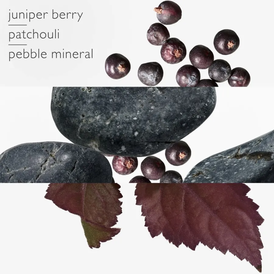 Ein Eau de Toilette mit mineralischen und holzigen Noten, das lebhafte Wacholderbeere, warmes Patschuli und salzigen Kieselstein vereint.