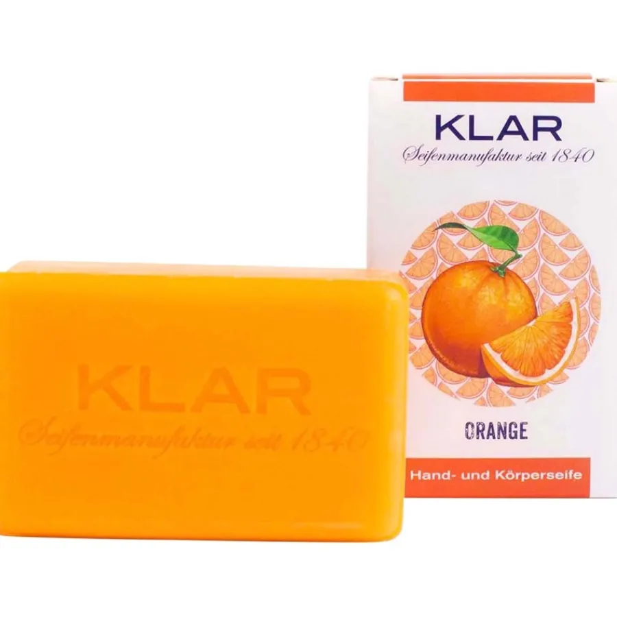 Genießen Sie die hochwertigen Inhaltsstoffe, die eine milde Reinigung und hautfreundliche Eigenschaften ermöglichen. Die enthaltenen Öle pflegen und bilden beim Waschen einen cremigen Schaum. Der intensive Duft der Seife Orange von Klar Seifen erinnert an erholsame Urlaubstage gepaart mit einem Hauch Exotik. Grund dafür ist das naturreine ätherische Öl aus Orangenschalen, das Frische und Lebendigkeit versprüht. Der beliebte fruchtige Charakter wirkt anregend und erhellt die Stimmung. Ätherisches Öl aus Gewürznelken sowie natürliche Duftstoffe aus Lavendel und Zitronen runden die gelungene harmonische Komposition ab.