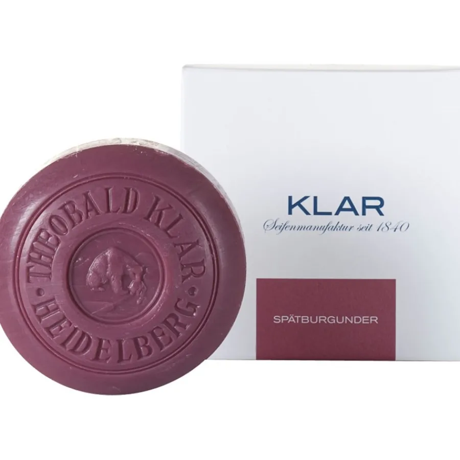 Die Seifen der Klar-Seifenmanufaktur punkten mit natürlichen Inhaltsstoffen, die die Haut bei der Reinigung pflegen. Die Seife Spätburgunder wird auf der Basis von Oliven- und Kokosöl hergestellt und ist palmölfrei. Der Spätburgundertraube werden antioxidative Eigenschaften nachgesagt, die sich auf den Glanz und die Gesundheit der Haut positiv auswirken sollen. Die Seife ist in einer hochwertigen Schachtel verpackt und eignet sich somit auch als Geschenk. Benutzen Sie die Seife zur Gesichts- und Körperreinigung, bevor Sie eine pflegende Creme oder eine nährstoffreiche Lotion auf die Haut auftragen.