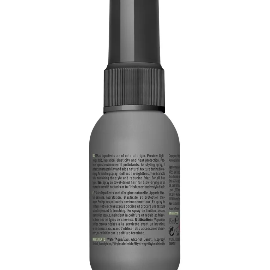 Ebenfalls zum Schutz der Umwelt und zur optimalen Pflege Ihrer Haare besteht das Conscious Style Multi-Benefit Spray von KMS aus einer minimalistischen, aber hochleistungsfähigen Wirkstoffformel, die alles enthält, was das Haar benötigt. Das I/E/H Copolymer, ein flexibles Styling-Polymer, verleiht elastischen Halt und schützt vor schädlichen Umwelteinflüssen, während das Feuchthaltemittel Octyldodecyl PCA nachhaltige Feuchtigkeit spendet. Außerdem enthält das Spray antioxidatives Moringasamenöl zum Schutz vor Umweltschadstoffen und beruhigendes Haferöl, das dazu beiträgt, das natürliche Gleichgewicht der Kopfhaut zu erhalten.AnwendungDas Conscious Style Multi-Benefit Spray von KMS ist für alle Haartypen gleichermaßen geeignet. Einfach auf das handtuchtrockene Haar sprühen und anschließend wie gewohnt föhnen. Bei der Verwendung eines Glätteisens auf das trockene Haar aufsprühen. Als Finish-Spray auf die fertige Frisur aufbringen.
