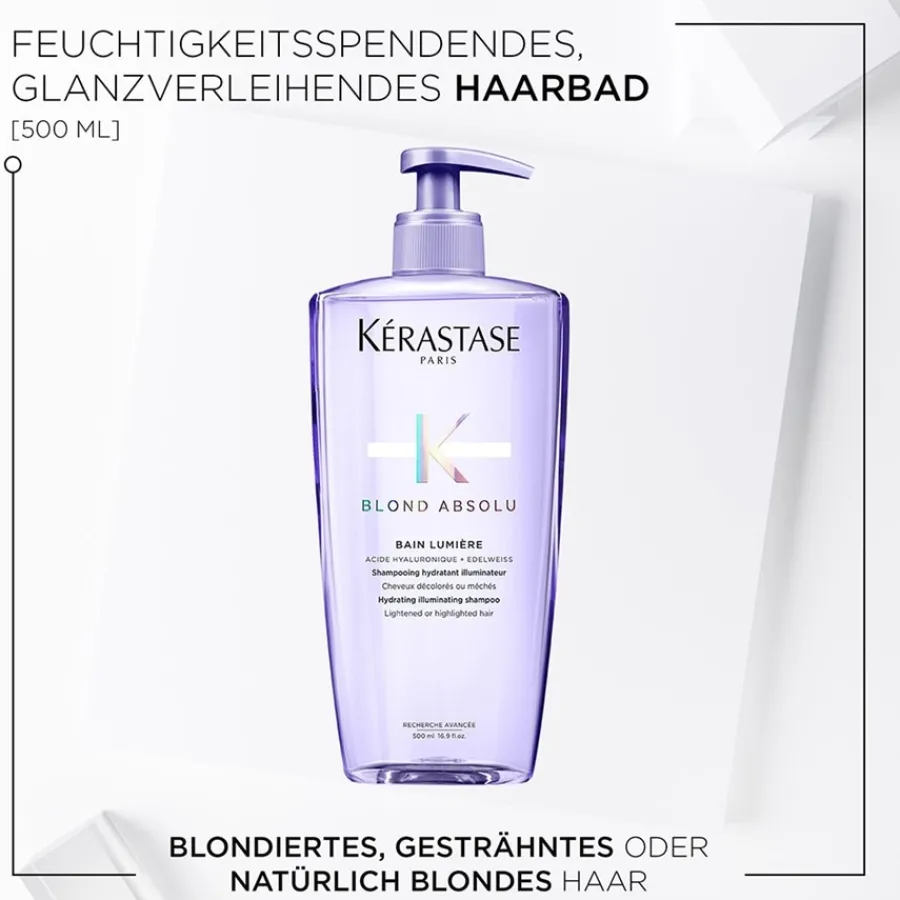 Das Blond Absolu Bain Lumière von Kérastase spendet blonden oder gesträhnten Haaren bis in die Spitzen tiefenwirksame Feuchtigkeit, die lange anhält. Es reinigt die Haare sanft und bietet optimalen Schutz vor freien Radikalen. Massieren Sie das Haarbad mit der flachen Hand in die feuchten Haare ein und spülen Sie es nach kurzer Einwirkzeit gründlich aus. Erleben Sie ein lang anhaltend seidiges Haargefühl und geschmeidiges Haar mit zauberhaftem Glanz!