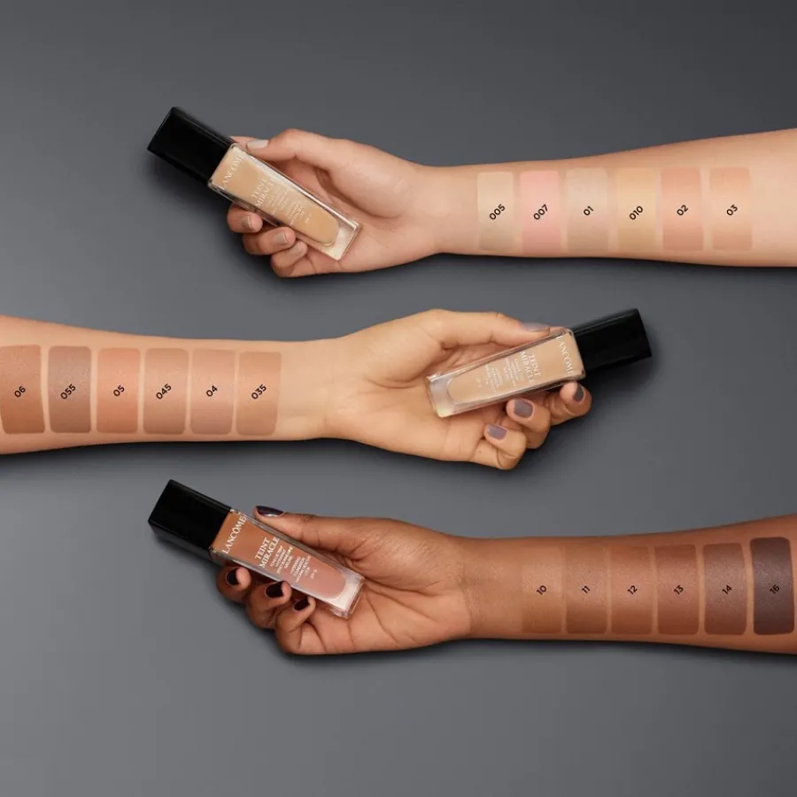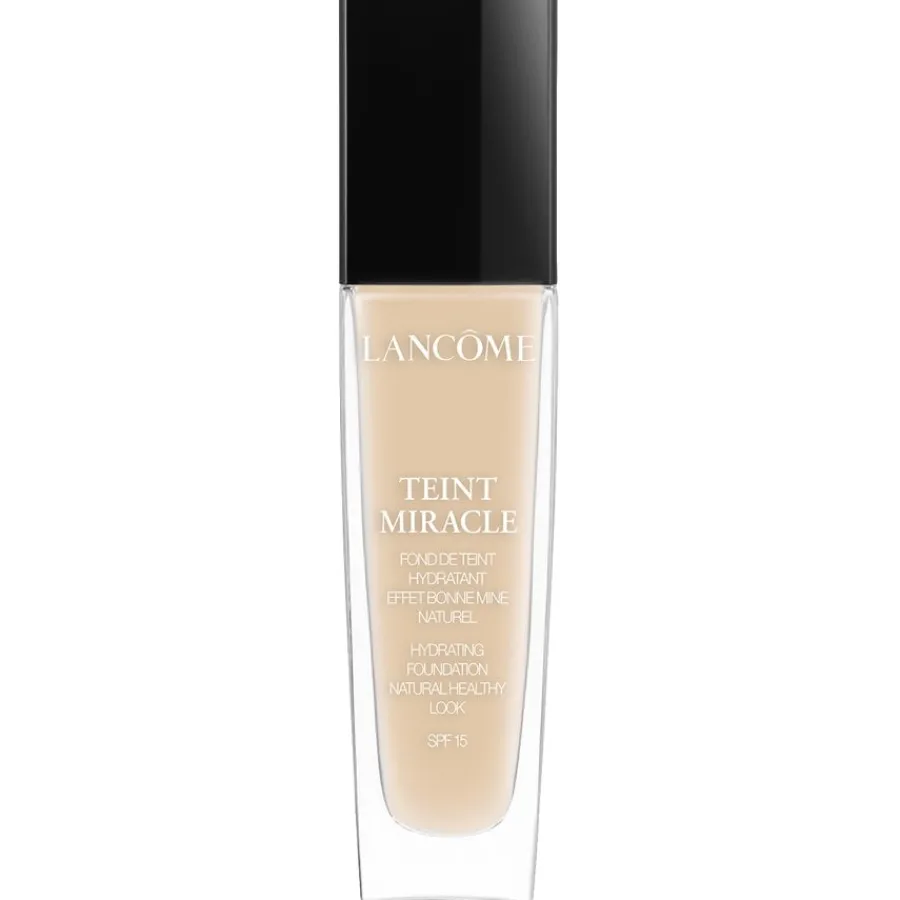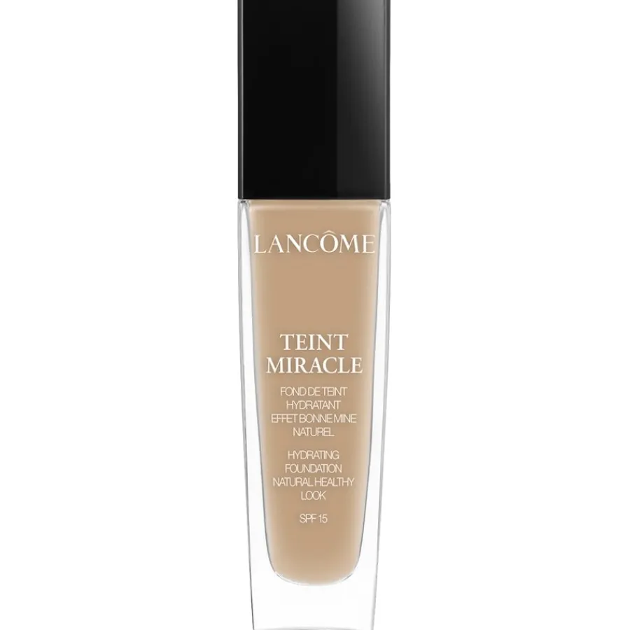 Die Teint Miracle Foundation von Lancôme zeichnet sich durch ihre leichte Textur sowie ihre zuverlässige Deckkraft aus. Sie kaschiert Pigmentflecken und lässt Unreinheiten verschwinden. Darüber hinaus verleiht die Foundation einen sanften Glow, der die natürliche Schönheit der Haut unterstreicht. Flüssiges Make-up spendet wohltuende Feuchtigkeit. Es pflegt trockene Gesichtspartien und hinterlässt einen weichen, ebenmäßigen Teint. Diese Lancôme Grundierung schützt durch ihren integrierten Lichtschutzfilter vor sonnenbedingter Hautalterung. Tragen Sie die Teint Miracle Foundation morgens nach der Reinigung auf Gesicht und Hals auf. Verwenden Sie einen Kosmetikpinsel, um die Farbe gleichmäßig zu verblenden.