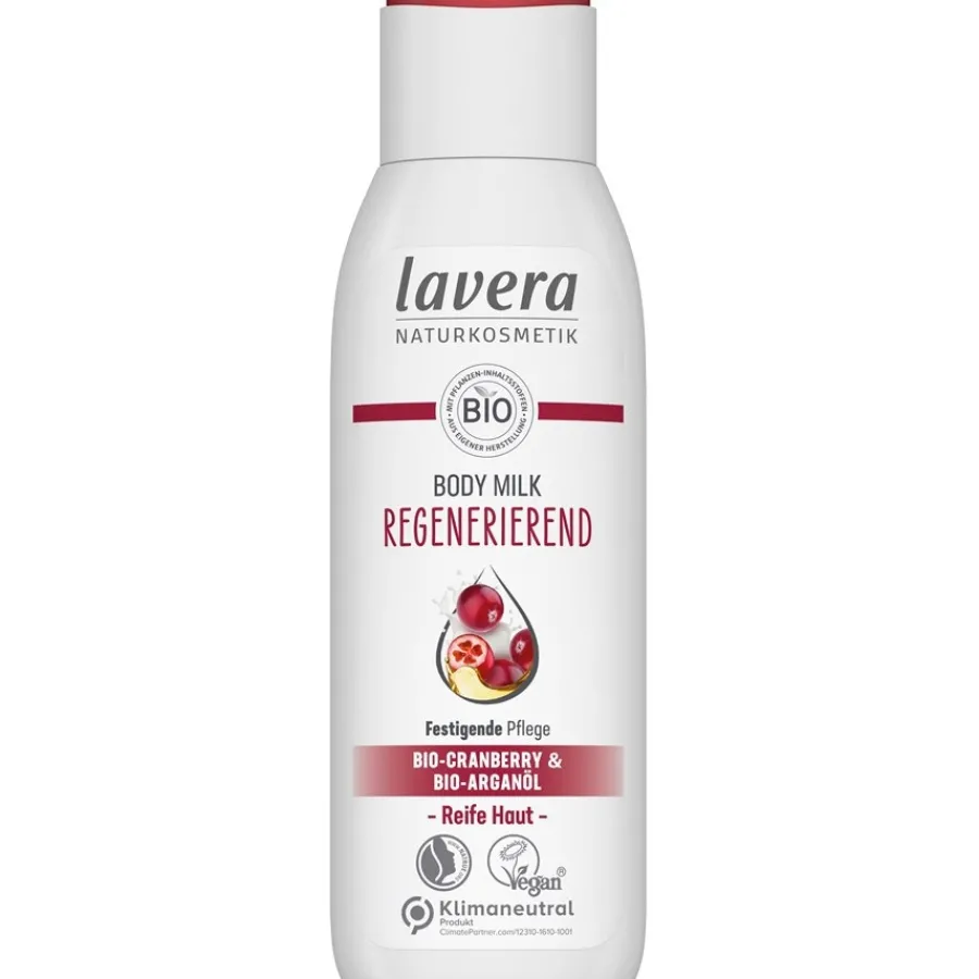 Die Regenerierende Body Milk Bio-Cranberry & Bio-Arganöl richtet sich speziell an reife Haut und mildert sichtbar die Anzeichen der vorzeitigen Hautalterung. Wertvolles Bio-Arganöl besticht mit seiner hautglättenden sowie feuchtigkeitsspendenden Wirkung und verwöhnt die Haut reichhaltig mit Nährstoffen wie Vitamin E. Ebenso wie Arganöl enthält auch das Extrakt aus Bio-Cranberry hohe Konzentrationen an Antioxidantien. Gemeinsam bilden diese beiden Komponenten das straffende und regenerierende Power-Duo dieser Body Lotion und Milk. Täglich angewendet, verleiht diese Hautpflege Festigkeit, Geschmeidigkeit und ein gesundes Aussehen. Die Regenerierende Body Milk Bio-Cranberry & Bio-Arganöl verjüngt anspruchsvolle oder reife Haut und bringt sie zum Strahlen.