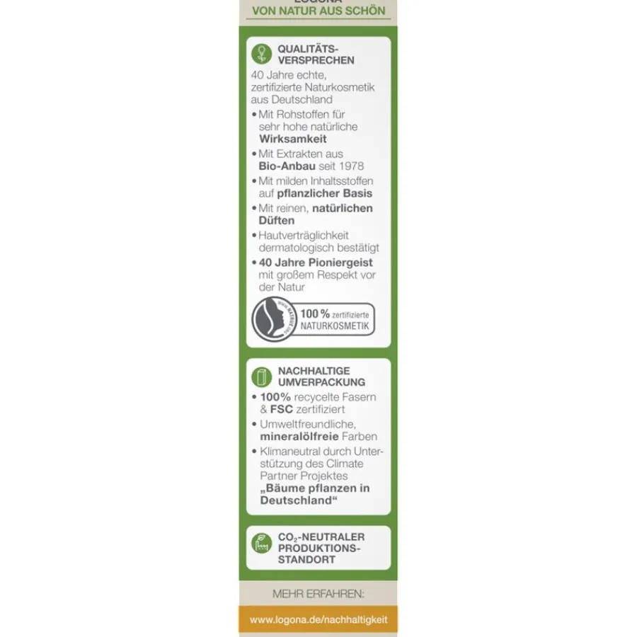 Die Festigende Augencreme aus dem Hause Logona verjüngt die Haut um die Augen und mildert erste Anzeichen der Hautalterung und kleine Fältchen. Mit einem reichhaltigen Wirkstoffkomplex aus Sheabutter, Glycerin und Sonnenblumenöl verwöhnt diese Gesichtspflege anspruchsvolle oder reife Haut und schenkt der besonders empfindlichen Haut der Augenpartie neue Vitalität und Festigkeit. Zudem nährt diese Augenpflege mit Sanddorn aus kontrolliert biologischem Anbau, der mit den Vitaminen C, E, A und Omega-7-Fettsäuren die Augenpartie erfrischt und intensiv Feuchtigkeit spendet. Die vegane Festigende Augencreme ist frei von bedenklichen Inhaltsstoffen.