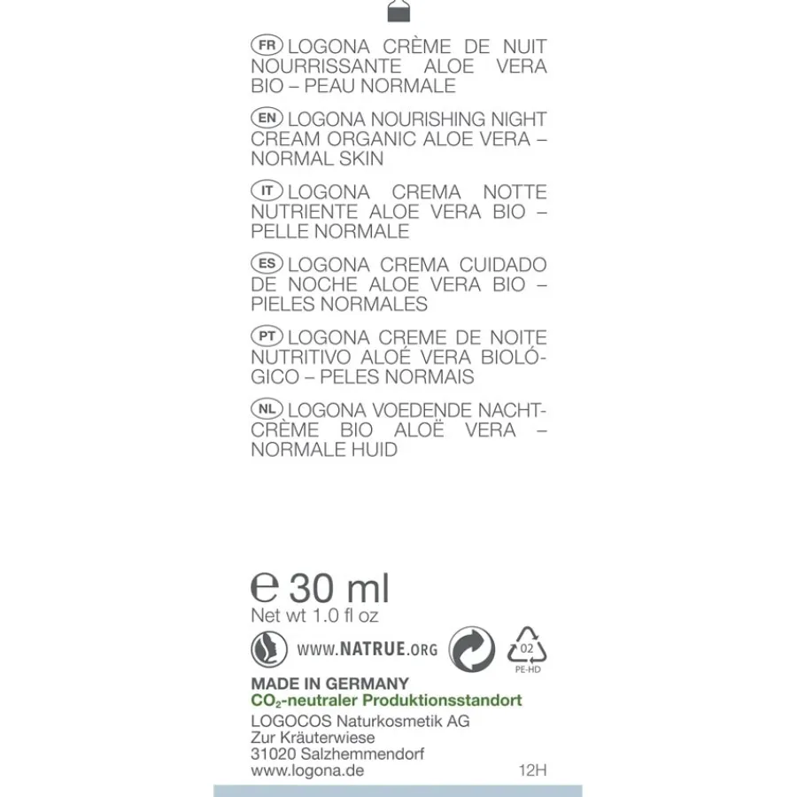 Der Inhaltsstoff Bio-Aloe Vera wird wegen seiner feuchtigkeitsspendenden Eigenschaften in der Naturkosmetik seit Langem geschätzt. Der rein natürliche Extrakt wird aus dem Wasserspeichergewebe der Blätter von Aloe Vera-Pflanzen gewonnen, die ein wahrer Alleskönner aus der Natur sind. Die Aloe Vera-Extrakte wirken auch Hautreizungen entgegen und sind wundheilend. Tragen Sie die Pflegende Nachtcreme jeden Abend auf das gereinigte Gesicht sowie Hals und Dekolleté auf und massieren Sie die Creme sanft ein. Ideale Ergänzungen der Gesichtspflege mit Bio-Aloe Vera sind das Hyaluron Hydro Fluid, die Feuchtigkeitsspendende Tagescreme, die 3 in 1 Reinigungsmilch oder das Tiefenreinigende Mizellenwasser von Logona.