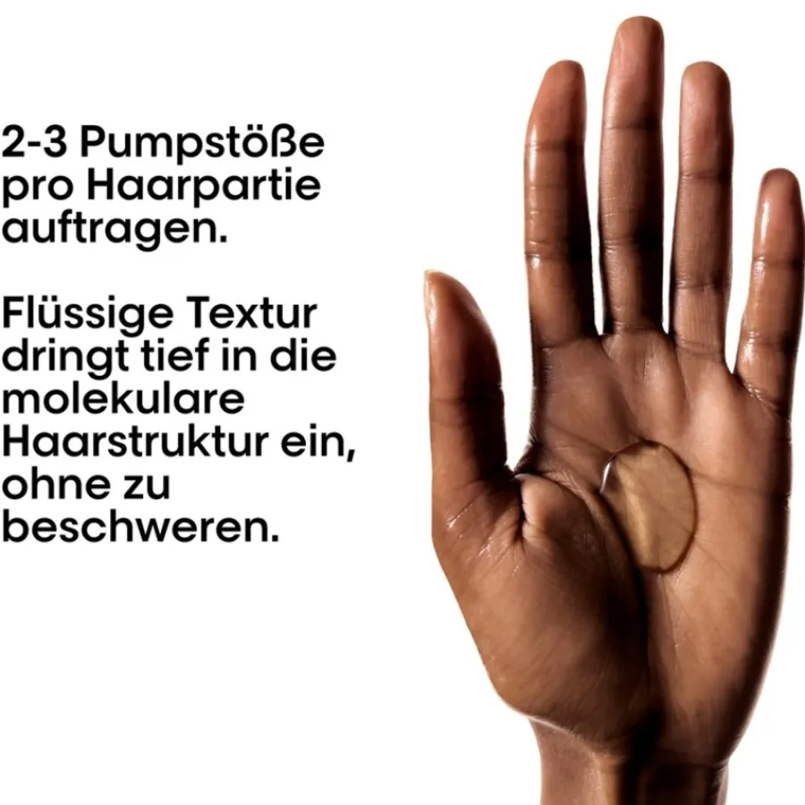Die Anwendung vom L’Oréal Professionnel Paris Serie Expert Absolut Repair Molecular Rinse-Off Serum ist ganz leicht: Zunächst sollten die Haare gründlich shampooniert und anschließend mit dem Handtuch oberflächlich getrocknet werden. Anschließend wird das Haar entwirrt und in zwei bis drei Abschnitte unterteilt. Nun das Serum mit etwa zwei bis vier Pumpstößen in die Haare geben und gut einmassieren. Das Serum zieht sofort ein, sollte aber rund zwei Minuten einwirken. Anschließend können Sie das Serum unter fließendem Wasser wieder ausspülen. Bei sehr stark geschädigten Haaren können Sie nun weitere Pflegeprodukte anwenden, zum Beispiel die reparierenden Leave-in-Pflegeprodukte des Herstellers.