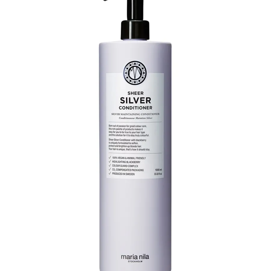 , der speziell für coloriertes Haar und helles Naturhaar geeignet ist. Der enthaltene Brombeer-Extrakt neutralisiert gelbstichige Farbtöne im Haar und bringt das Haar wieder zum Glänzen. Gleichzeitig sorgen stärkende Inhaltsstoffe für eine Verbesserung der Haarstruktur. Die Pflege ist darüber hinaus mit einem Farbschutzkomplex angereichert, der Ihr Haar zuverlässig vor dem Verblassen durch häufiges Haarewaschen und UV-Strahlen bewahrt.Die Spülung wird nach der Haarwäsche auf das Haar aufgetragen und sanft einmassiert. Nach einer kurzen Massage wird das Produkt sorgfältig aus dem Haar gewaschen und Sie können mit dem Trocknen und Stylen beginnen. Für optimale Resultate ist eine regelmäßige Anwendung der Pflege notwendig. Außerdem ist es empfehlenswert, den Conditioner mit Shampoo und Haarmaske der Sheer Silver Serie zu kombinieren.