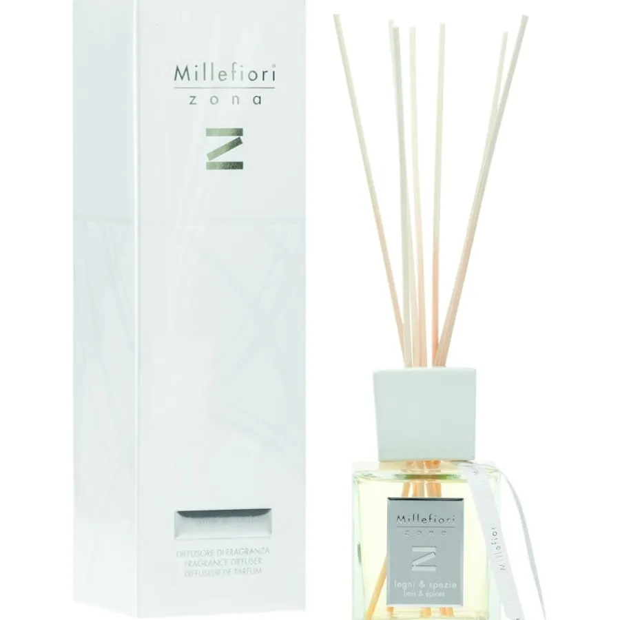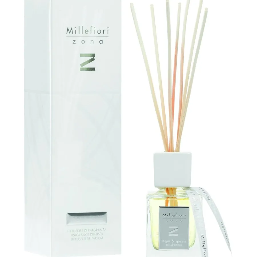 Den Auftakt macht beim Raumduft Millefiori MILANO Zona Legni & Spezie die Kopfnote, die frischen Eukalyptus mit Bitterorange und Lavendelblüten kombiniert. In der Herznote wird es weicher und floraler, vor allem dank Ingwer und Geranie, aber auch Iris und Rosenblüten haben ihren Anteil daran. Die Basisnote nutzt Edelhölzer wie Zedernholz und Sandelholz, während zarte Vanille dem Raumduft Millefiori MILANO Zona Legni & Spezie eine sinnliche Silhouette beschert. Patschuli und Moschus komplettieren die einfalls- und facettenreichen Düfte schließlich. Wie gewohnt, verwendet die italienische Manufaktur aus Mailand ausschließlich qualitativ hochwertige Duftessenzen.