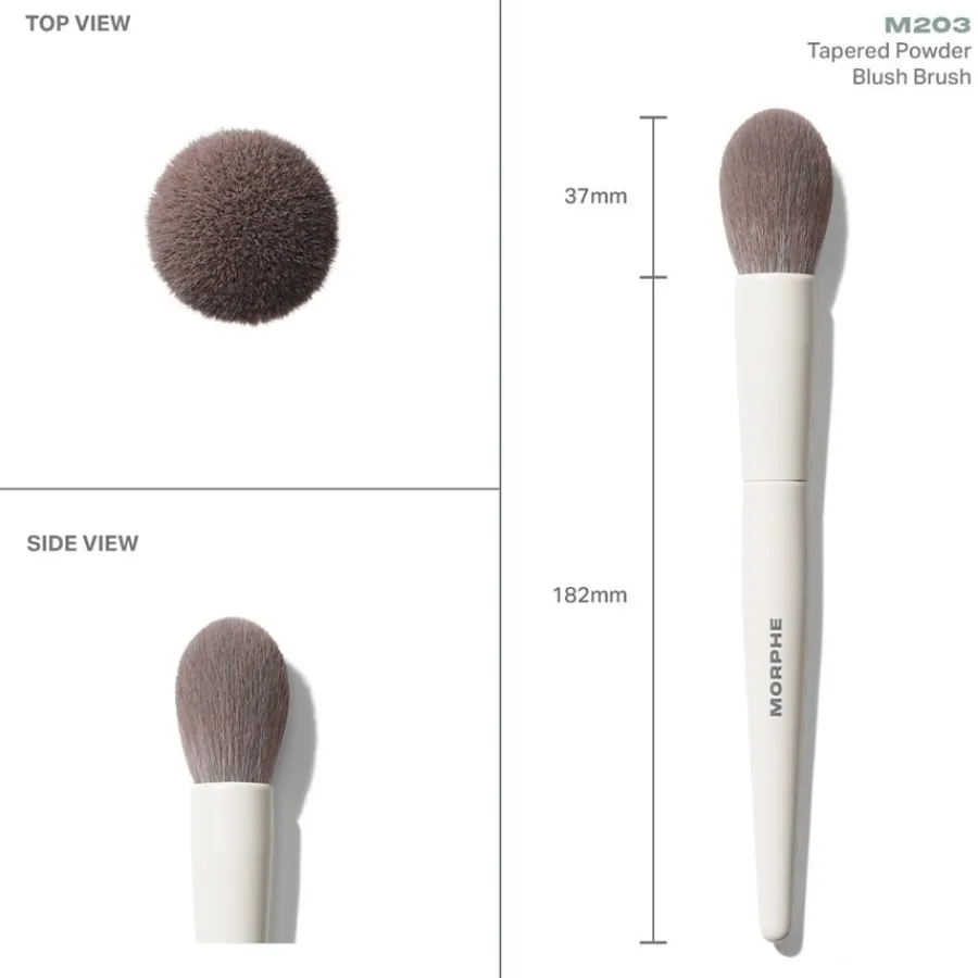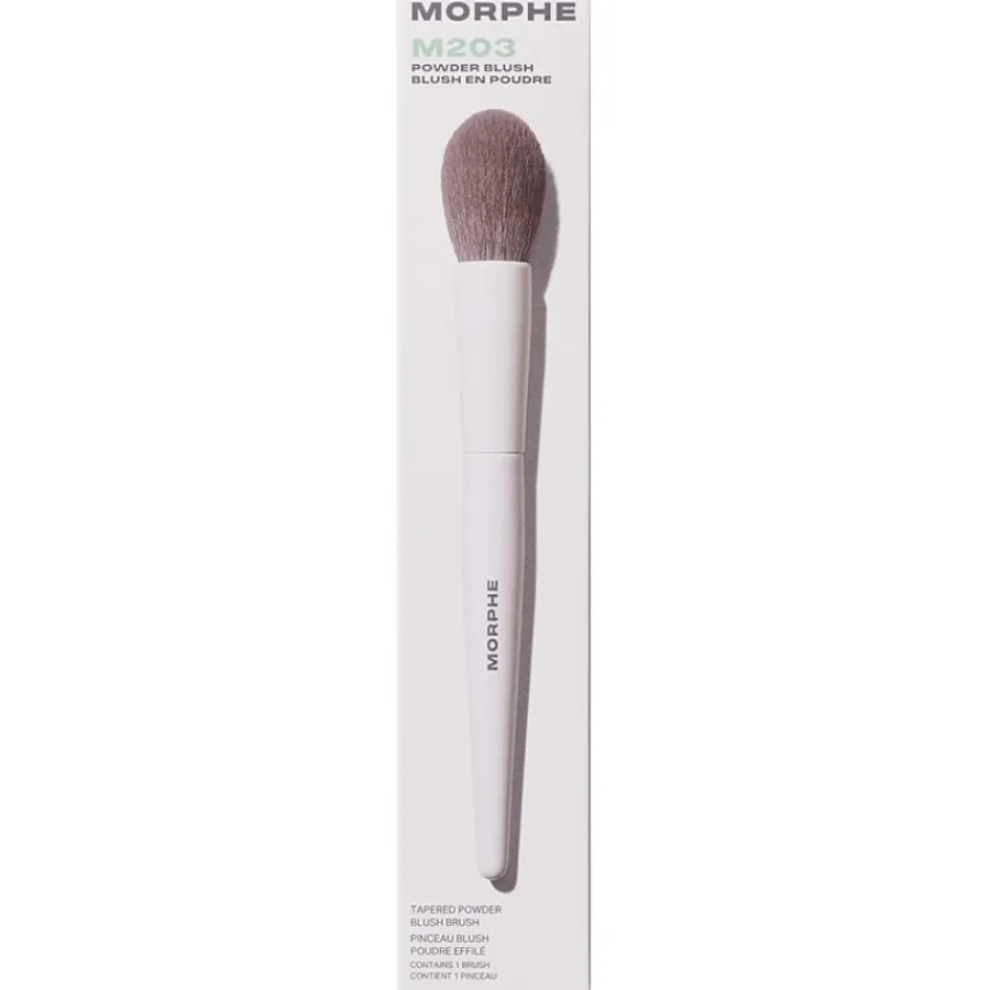 Der M203 Tapered Powder Blush Brush von Morphe ist als schlanker Gesichtspinsel ideal für den Auftrag von Make-up zur klaren Definition des Wangenbereichs. Mit seinen fluffigen, leichten Borsten hilft der Pinsel dabei, puderförmiges Rouge präzise und leicht aufzulegen und sanft auf der Gesichtshaut zu verteilen.