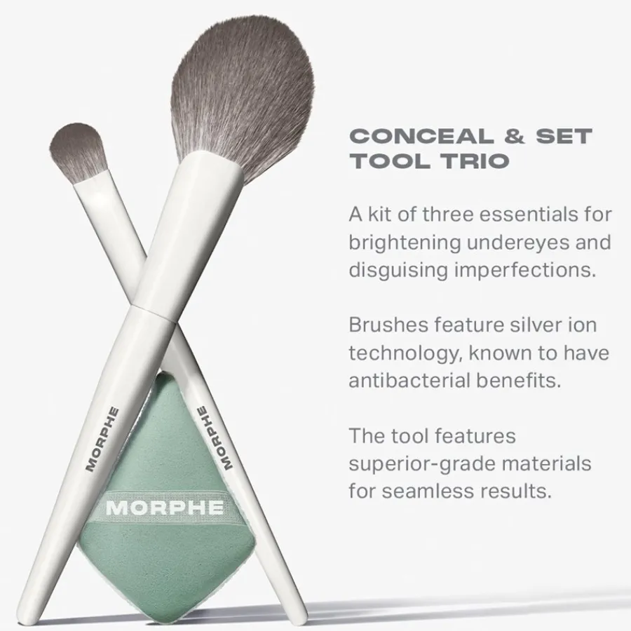 Das Conceal & Set Tool Trio aus der Morphe-Serie der Gesichtspinsel-Sets wird für ein effektvolles Make-up auf Basis von Ionentechnologie gefertigt. Hierdurch gewinnen die Gesichtspinsel des Sets antibakterielle Eigenschaften. Sie hemmen die Vermehrung von Keimen, sodass Ihr Morphe Conceal & Set Tool Trio bei einer kontinuierlichen Pflege stets hygienisch rein und bedenkenlos anwendbar ist.