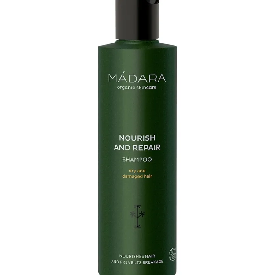 Das Nourish & Repair Shampoo von MÁDARA pflegt strapazierte Haare intensiv und regeneriert sie. Spliss und Haarbruch reduziert es effektiv. Es reinigt die Haare sanft, stärkt sie und revitalisiert sie. Seine Formel ist vegan, frei von Tierversuchen und besonders mild zur Haut. Sie ist die ideale Wahl für trockene, feine und strapazierte Haare. Tragen Sie eine kleine Menge Shampoo auf die nassen Haare auf und massieren Sie es sorgfältig ein. Lassen Sie das Produkt aufschäumen und spülen Sie es gründlich wieder aus. Genießen Sie geschmeidig weiches, gesundes Haar mit fantastischem Glanz!