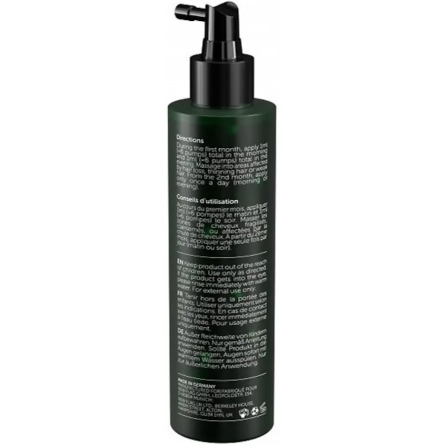Das Hair Growth Serum von Natucain eignet sich zur Anwendung bei Männern und Frauen, die unter schütterem, dünner werdendem Haar leiden. Dabei hilft es bei hormonell und erblich bedingtem Haarausfall gleichermaßen wie bei wechseljahrsbedingtem und kreisrundem Haarausfall. Das Serum ist vegan, paraben- und sulfatfrei und enthält keine Silikone. Dank seiner hormonfreien Formel ist es frei von Nebenwirkungen wie juckende oder brennende Kopfhaut, Rötungen oder Kopfschmerzen. Bei regelmäßiger Anwendung lassen sich erste Ergebnisse bereits nach 8 bis 12 Wochen beobachten.