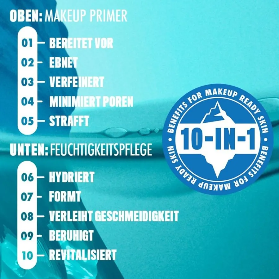 entscheiden, müssen Sie sich vor der Anwendung um den Hauttyp keine Gedanken machen. Das Face Freezie 10-in-1 Cooling Primer + Moisturizer von NYX Professional Makeup ist für alle Hauttypen gleichermaßen geeignet. Dies gilt insbesondere auch für die empfindliche Haut. Die Inhaltsstoffe im Primer sind hochwertig ausgesucht und miteinander kombiniert. Sie reizen die Haut nicht, sondern schenken ihr Wirkstoffe, die auf natürlicher Basis hergestellt sind. Somit kann Ihre Haut die Hautpflege Face Freezie 10-in-1 Cooling Primer + Moisturizer von NYX Professional Makeup sofort aufnehmen. Die Wirkung zeigt sich sofort in einem reinen Hautbild. Sie wirkt gesund und perfekt gepflegt.