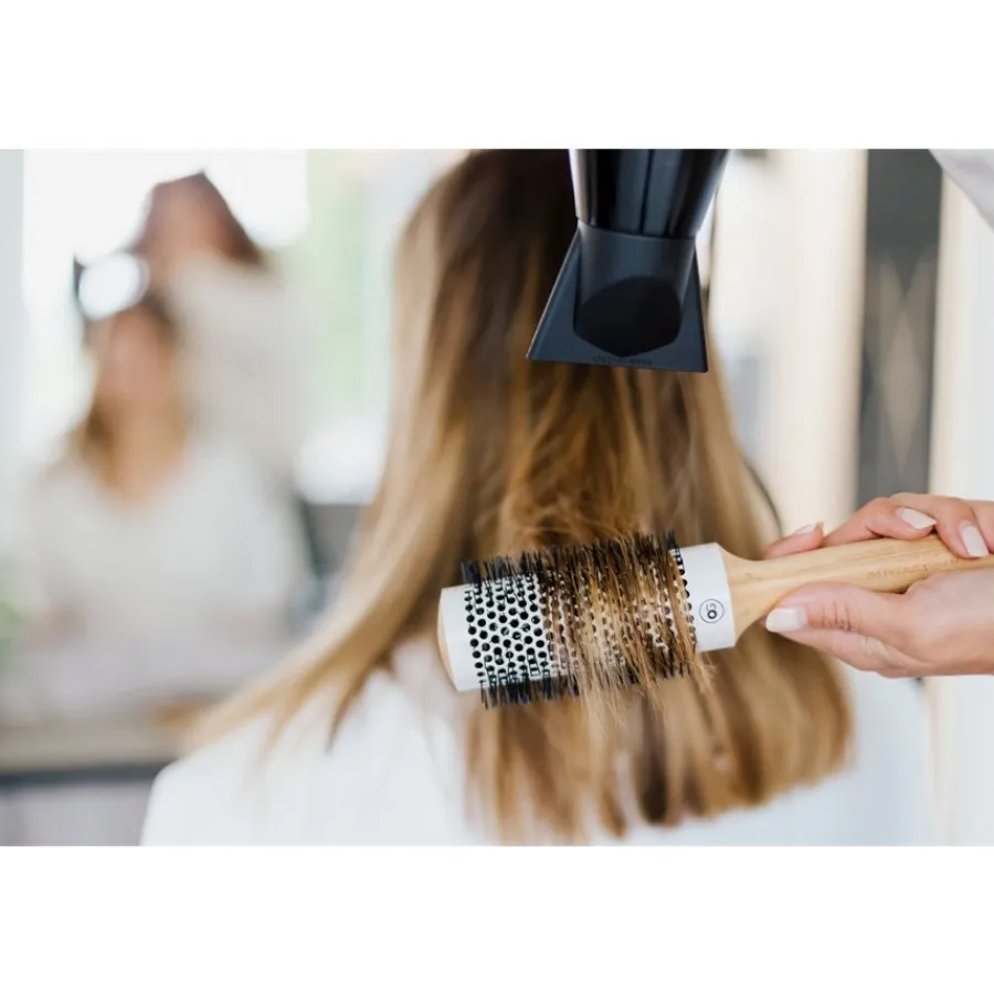 Ionisierte Haarbürsten verhindern die statische Aufladung der Haare und erleichtern gleichzeitig das Frisieren verfilzter Haare. Die thermalen Bürsten sind in verschiedenen Ausführungen erhältlich und sorgen für geschmeidige Haare mit professionellem Finish. Zur Anwendung werden die Haare in mehrere Sektionen aufgeteilt und anschließend mit der Thermal Rundbürste von Olivia Garden geföhnt. Fahren Sie mit der Haarbürste durch das Haar, während Sie die Bürste rollen, um Volumen oder Glätte zu erzeugen. Dieser Vorgang eignet sich für die tägliche Haarpflege und kann so lange wiederholt werden, bis das Haar die gewünschte Form erhält.