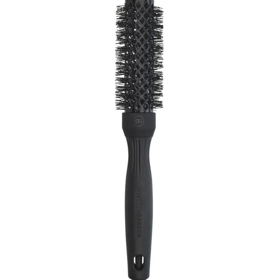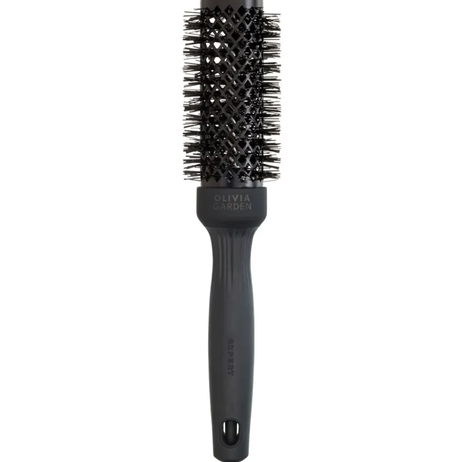 Mit der Expert Blowout Shine Rundbürste Black Label mit gewellten Borsten werden die Haare wohltuend verwöhnt.Die schwarze Blowout-Tumalinbürste bietet dem Haar optimalen Schutz vor dem Austrocknen. Die Rundbürste ist mit einer effizienten Keramik- und Ionentechnologie ausgestattet. Dank der hochwertigen Keramikbeschichtung des Bürstenkopfes wird die Wärme gleichmäßig über dem Bürstenkopf verteilt. Die ionisierten Nylonborsten verhindern, dass das Haar statisch aufgeladen wird. Das edle Design in ansprechendem Schwarz lässt nichts an Funktionalität vermissen. Die Expert Blowout Shine Rundbürste Black Label mit gewellten Borsten punktet mit ihrem geringen Gewicht, das selbst aufwendige Styles ohne zu ermüden gelingen lässt. Ein weiteres Plus ist der der erleichterten Handhabung angepasste Handgriff mit angenehmem Soft-Grip und integrierter Abstellspitze. Mit den Blowout-Haarbürsten von Olivia Garden kann jeder Look mühelos kreiert werden!