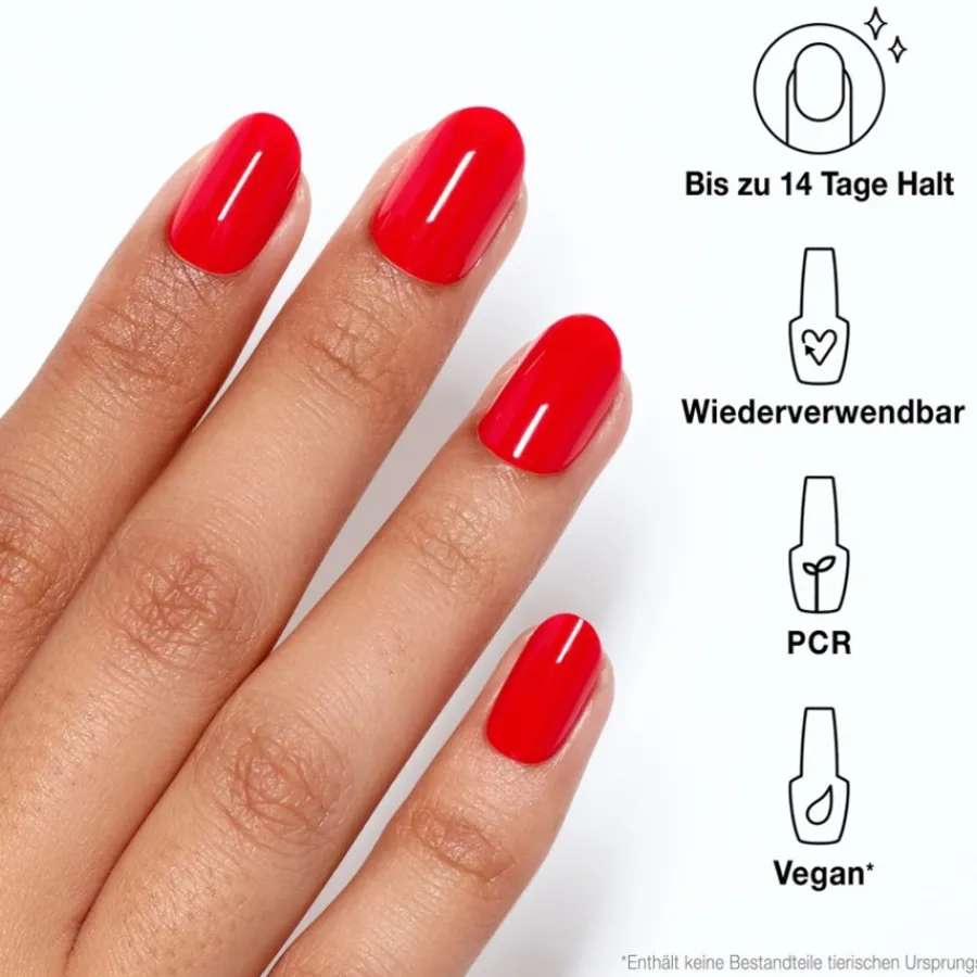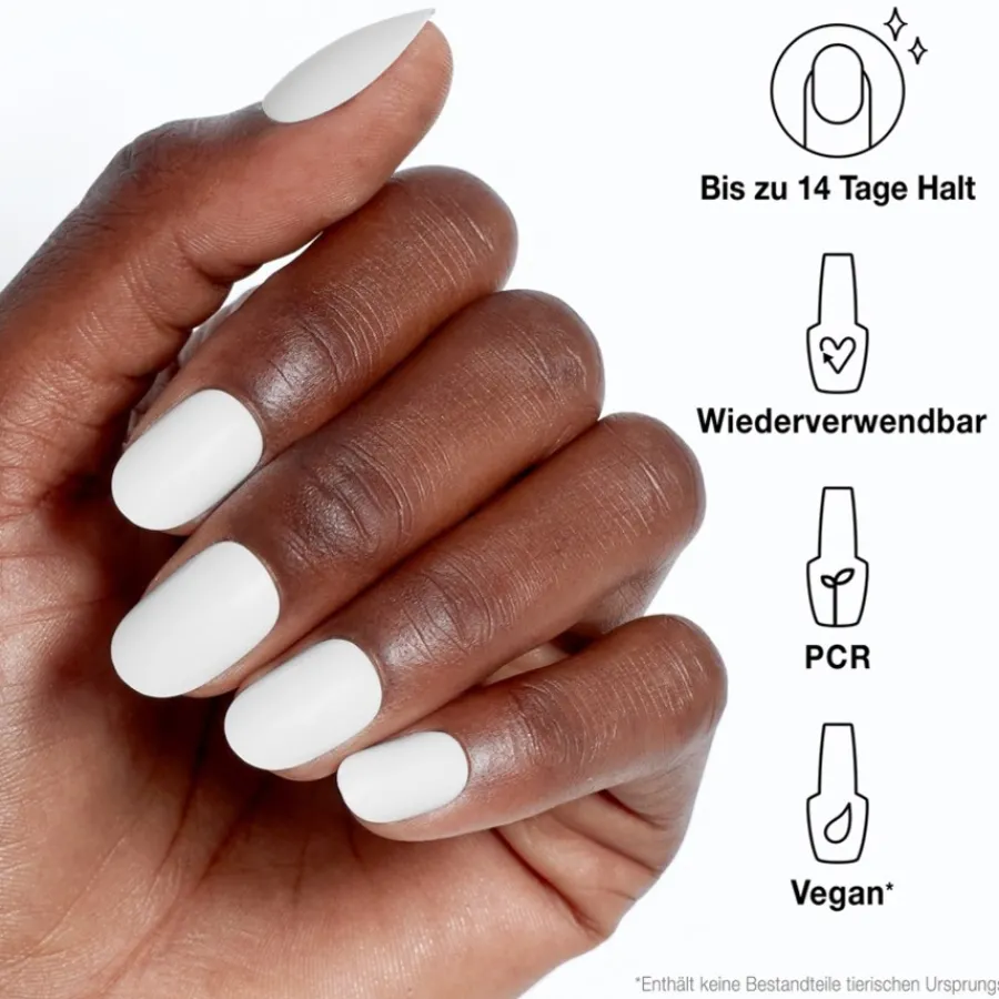 OPI-Classic-Kunstnägel sind in zahlreichen Designs und Farben erhältlich. Der lange Halt von bis zu 14 Tagen zeichnet xPRESS/ON-Kunstnägel aus. Egal welche Form und Farbe Sie bevorzugen, Sie erhalten künstliche Fingernägel, die sich für jeden Typ und für jeden Anlass eignen. Die Anbringung auf den eigenen Naturnägeln ist mit dem enthaltenen Kleber schnell und einfach möglich. Im OPI-xPRESS/ON-Set enthalten ist ein Nagelhautstäbchen, ein Buffer und ein Prep-Pad.