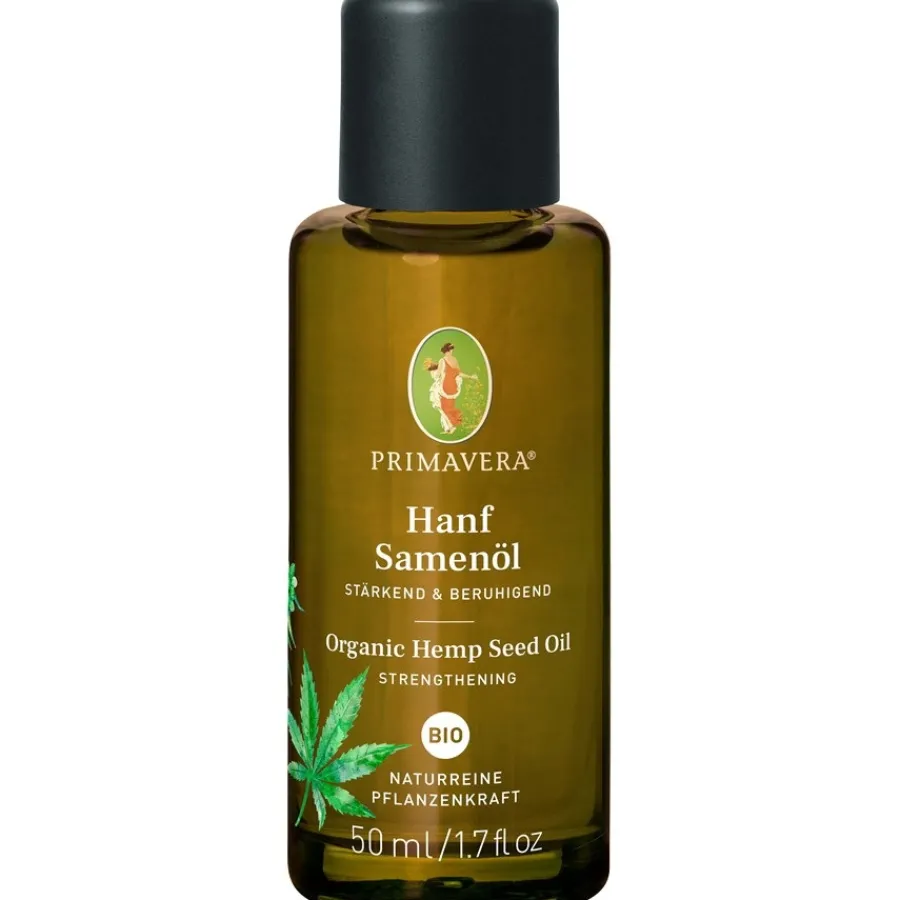 PRIMAVERA Hanf Samenöl bio gehört zu den nachhaltigen Produkten der Reihe hochwertiger Pflegeöle des Naturkosmetik-Spezialisten für naturreine Hautpflege. Hanfsamenöl wirkt straffend, stärkend und beruhigend. Besonders für gereizte und empfindliche Haut ist das Öl gut geeignet. Die entspannenden und pflegenden Effekte werden dem speziellen Fettsäurespektrum der Hanfsamen zugeschrieben. Das 3:1-Verhältnis von Linolsäure zu Alpha-Linolensäure gilt als gute Basispflege für Personen mit Neurodermitis, Schuppenflechte oder zur Narbenpflege. Hanf Samenöl bio ist zusätzlich mit Bio-Sonnenblumenöl sowie Tocopherol angereichert. Es ist vegan, tierversuchsfrei sowie mit dem Natrue-Zeichen für geprüfte Naturkosmetik versehen.