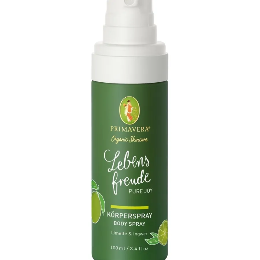 Das neue Organic Skincare Lebensfreude Körperspray ist die neue Erfrischung von PRIMAVERA. Mit kühlendem Effekt gibt ihnen diese wunderbare Hautpflege den belebenden Hell-Wach-Kick, wann immer Sie ihn brauchen. Das Spray befeuchtet Ihre Haut und duftet herrlich nach fruchtig-frischer Limette und Bio-Ingwer. Dabei wirkt die Limette auf die Haut aktivierend und sanft adstringierend. So wird das Hautbild geglättet. Der Bio-Ingwer wärmt und revitalisiert durch sein würziges Aroma. Entdecken Sie die natürliche Frische mit der sorgsam designten Pflanzenkraft-Komposition aus Bio-Limettenwasser, Bio-Kiwi-Extrakt, Bio-Avocado, Aloe Vera und Bio-Mateblättern.