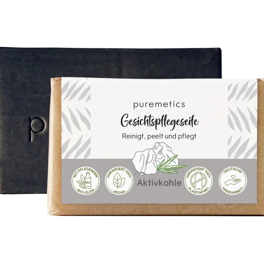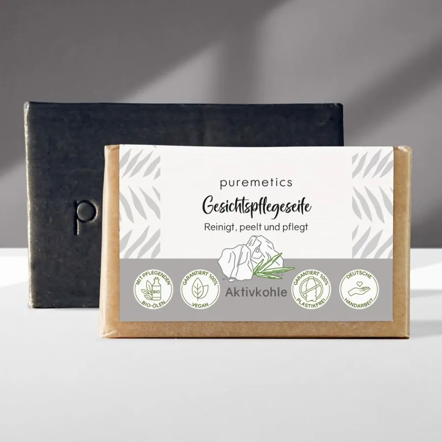 Bio-Babassuöl und Bio-Jojobaöl versorgen die Hautzellen mit pflegenden Fetten, während die grüne Tonerde für den sanft exfolierenden Effekt bei der Anwendung verantwortlich ist. Die Minze in der Seife duftet nicht nur wunderbar. Sie wirkt auch entzündungshemmend auf der Haut und hat darüber hinaus einen beruhigenden Effekt. Bei der Anwendung schäumen Sie die Gesichtspflegeseife Aktivkohle zunächst gründlich mit warmem Wasser auf und verteilen sie dann auf der Gesichtshaut. Warten Sie eine Minute, bevor Sie die Seife wieder abspülen, damit die wertvollen Inhaltsstoffe Zeit haben, ihre Wirkung zu entfalten. Gut zu wissen: In unserem Shop finden Sie weitere tolle Natur-Seifen von puremetics für eine angenehme Hautpflege. Dazu gehören zum Beispiel die Gesichtspflegeseife Mediterran, die Hand- und Duschpflegeseife Vanille, die Kinderseife Tropical und die Haarseife Grapefruit Zypresse.