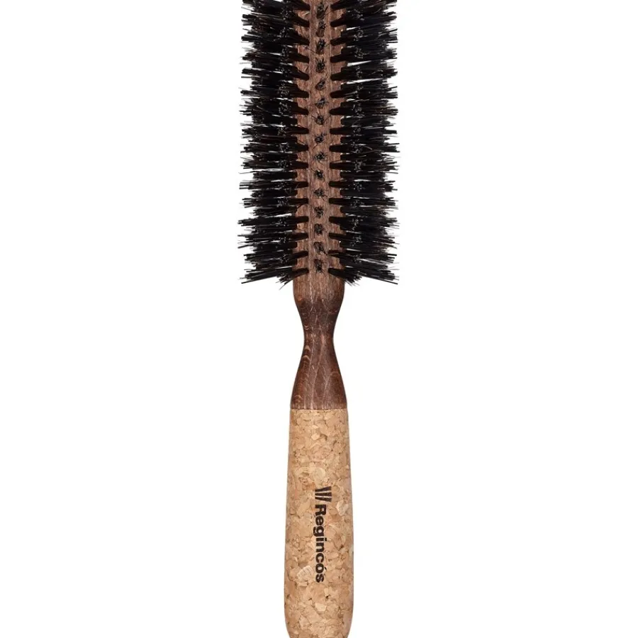 So gelingt das Föhnen nach der Haarwäsche mühelos! Bringen Sie Ihre Haare optimal in Form, indem Sie die Rundbürste 20729 Ø 19/55 mm von Regincós verwenden. Der Außendurchmesser der Rundbürste beträgt 55 mm, der Innendurchmesser liegt bei 19 mm. Das Bürstenteil besteht aus einem Holzkörper, auf dem die Borsten in Zehnerreihen rundum gleichmäßig angeordnet sind. Die verstärkten Mischborsten aus 65 % Wildschwein und 35 % Nylon sind schonend für die Haare und sorgen für einen gesunden, sanften Glanz. Der Korkgriff der Rundbürste liegt angenehm in der Hand. Ihre Hände kommen nicht ins Schwitzen, auch wenn Sie besonders sorgfältig Strähne für Strähne föhnen. Zudem ist Kork leicht und antistatisch. Die Rundbürste 20729 Ø 19/55 mm mit Korkgriff verhindert die elektrische Aufladung. Die Bürste mit dem praktischen Korkgriff ist für jeden Haartyp geeignet. Mit der Rundbürste 20729 Ø 19/55 mm können Sie Ihre Haare nach Wunsch stylen – das Ergebnis sind schwungvolle Haare mit viel Volumen.
