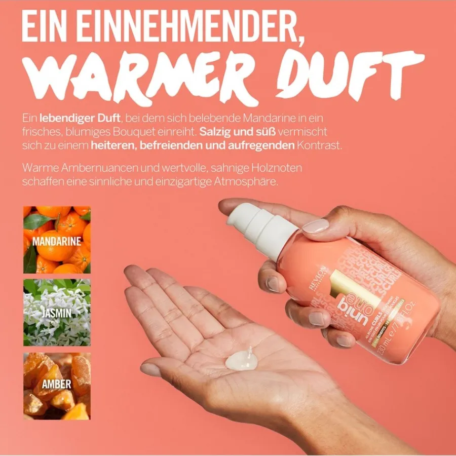 Es wurde speziell gegen Frizz entwickelt und ist perfekt, um Lockenfrisuren mehr Schwung und Elastizität zu geben. Besonders gefällt am Produkt, dass alle Inhaltsstoffe hochwertig und zugleich auch vegan sind. Das All in One Curls Hair Treatment zeigt eine lang anhaltende Wirkung, der Anti-Frizz-Effekt im Haar hält bis zu 96 Stunden an. Seine für Uniqone typisch leichte Textur beschwert das Haar nicht. Gleichzeitig bietet das Treatment von Revlon Professional einen verlässlichen Hitzeschutz, es beugt zudem Spliss vor. Eine kleine Menge des Produkts wird auf den Handflächen verteilt und in Spitzen und Längen gearbeitet. Das Styling erfolgt wie gewohnt.