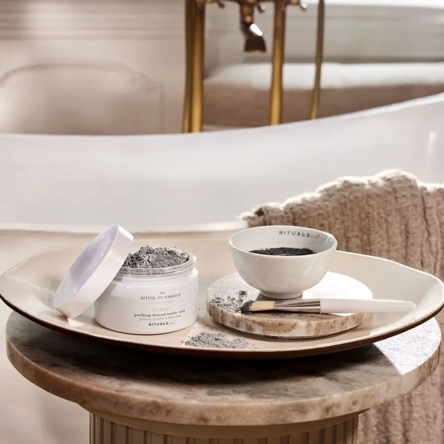Wie bereits eingangs dargelegt, sollte die Rituals The Ritual Of Namaste Purifying Charcoal Wonder Mask ausschließlich auf das gereinigte Gesicht appliziert werden. Ein klassisches Reinigungsprodukt ist aber nicht nötig, das Gesicht stattdessen mit lauwarmem Wasser abzuspülen ist ausreichend. Nun rühren Sie einen Esslöffel von dem Pulver mit etwas Wasser an, mithilfe des Pinsels verteilen Sie die Hautpflege gleichmäßig im Gesicht. Dort muss sie dann rund 20 Minuten lang einwirken, anschließend können Sie die Maske mit lauwarmem Wasser wieder abnehmen. Die Maske kann ein- bis dreimal wöchentlich genutzt werden, bei trockener Haut eher einmal pro Woche.
