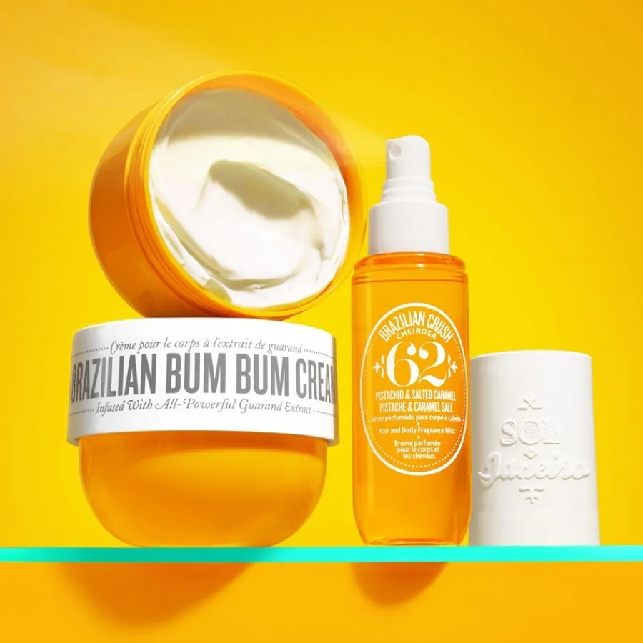 Sol de Janeiro Perfume Mist hüllt den gesamten Körper ebenso wie den Haarschopf nach Belieben in einen köstlichen Duft aus Pistazie und gesalzenem Karamell. Die luxuriöse Textur ist angenehm leicht wie die brasilianische Lebensfreude. Dank der pflegenden Formulierung trocknet das Body Mist die Haut und die Sommermähne nicht aus, sondern verwöhnt mit erlesenen Inhaltsstoffen wie Hyaluron oder Cupuaçu-Butter. Der warme Duft Cheirosa 62 kann das Parfum an heißen Tagen ganz unkompliziert ersetzen. Gleichzeitig lässt sich das Hair & Body Fragrance perfekt mit den anderen intensiven Aromen der Sol-de-Janeiro-Körperpflege layern. So passt das Spray etwa optimal zur beliebten Bum Bum Cream.