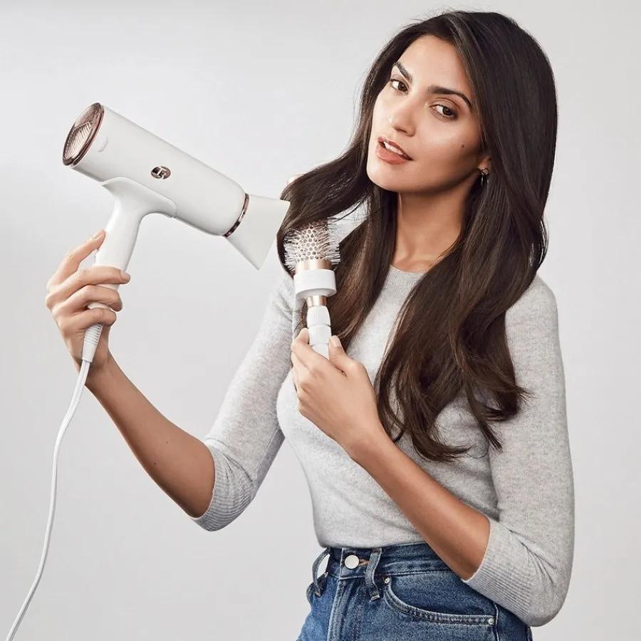Vor dem Styling mit der Rundbürste föhnen Sie das Haar, bis es zu 80 % trocken ist. Nun setzen Sie die Bürste unter einer Haarsträhne direkt an den Wurzeln an und ziehen sie nach unten. Richten Sie dabei den Luftstrom des Föhns auf die Bürste. Sobald die Haarspitzen erreicht sind, rollen Sie die Haare an den Kopf und halten die Bürste kurz an Ort und Stelle. Um eine perfekte Föhnfrisur zu kreieren, behandeln Sie alle weiteren Strähnen auf diese Weise.