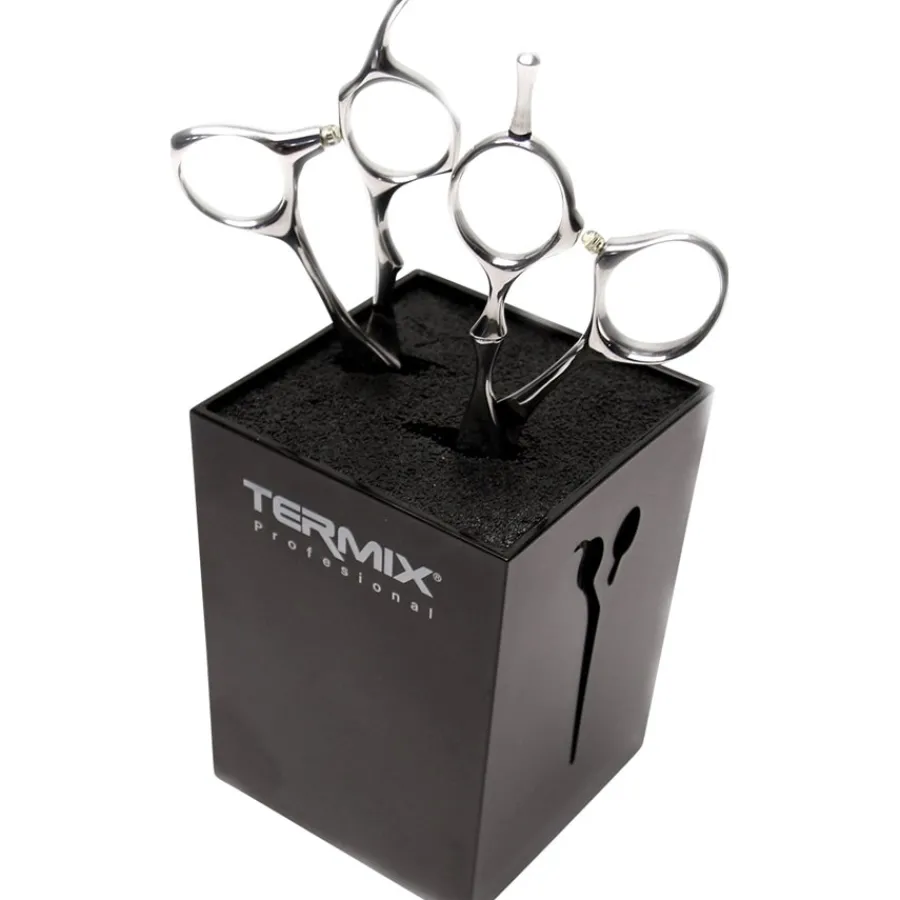 Viele Hairstylisten kennen es: Wird eine ganz spezielle Schere benötigt, ist sie selten zur Stelle. Mit dem Scherenhalter der Serie „Professionelles Friseurzubehör“ von TERMIX lässt sich kurzerhand Abhilfe schaffen. Er sorgt dafür, dass alle Scheren an einem zentralen Ort verbleiben und mehreren Hairstylisten zuverlässig zur Verfügung stehen. Da das Suchen nach einer passenden Schere entfällt, reduziert sich der Aufwand – Zeit, die dem Kunden zugute kommt. Der geschmackvoll gestaltete Halter hat ein stilvolles Design und passt mit seiner neutralen Farbe in jedes Interieur eines professionellen Friseursalons.