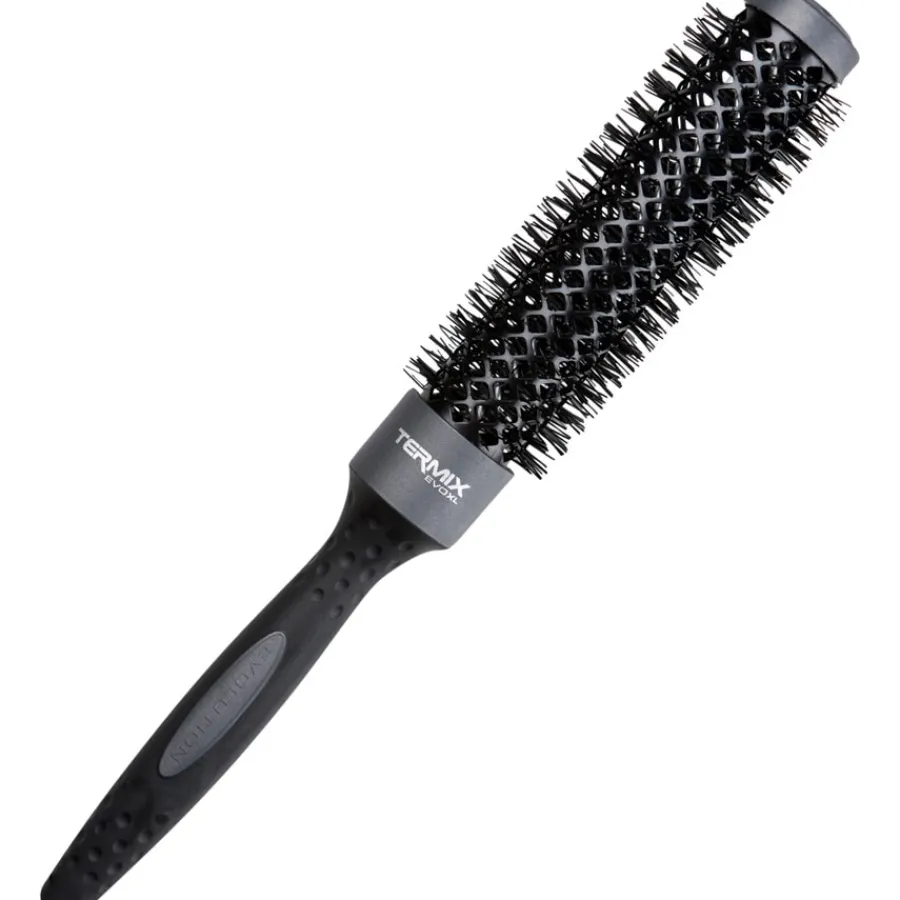 Die Evolution XL Rundbürsten von Termix sind mit großen Luftöffnungen im Bürstenkörper versehen. Sie lassen die Luft um das Haar herum perfekt zirkulieren und reduzieren dadurch die Trockenzeit. Für eine komfortable, entspannte und ermüdungsfreie Handhabung der Bürsten sorgen die ergonomisch geformten und rutschfesten Handgriffe mit Soft-Touch Beschichtung. Alle Bürsten eignen sich sehr gut zum Frisieren und Trocknen vom langem Haar und für zusätzliches Volumen.